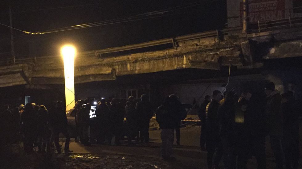 Обрушение моста на Шулявском путепроводе в Киеве. Фоторепортаж