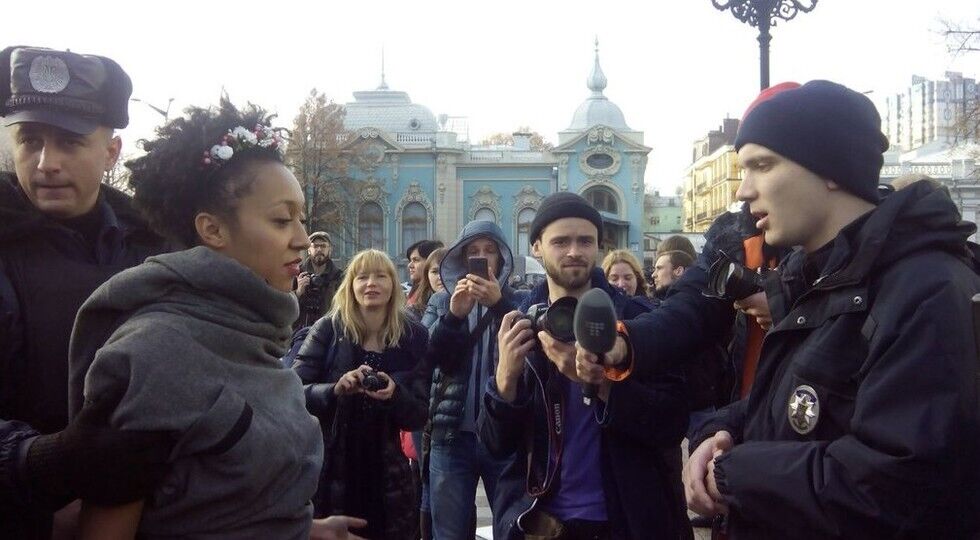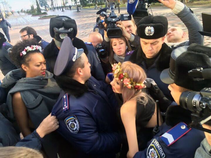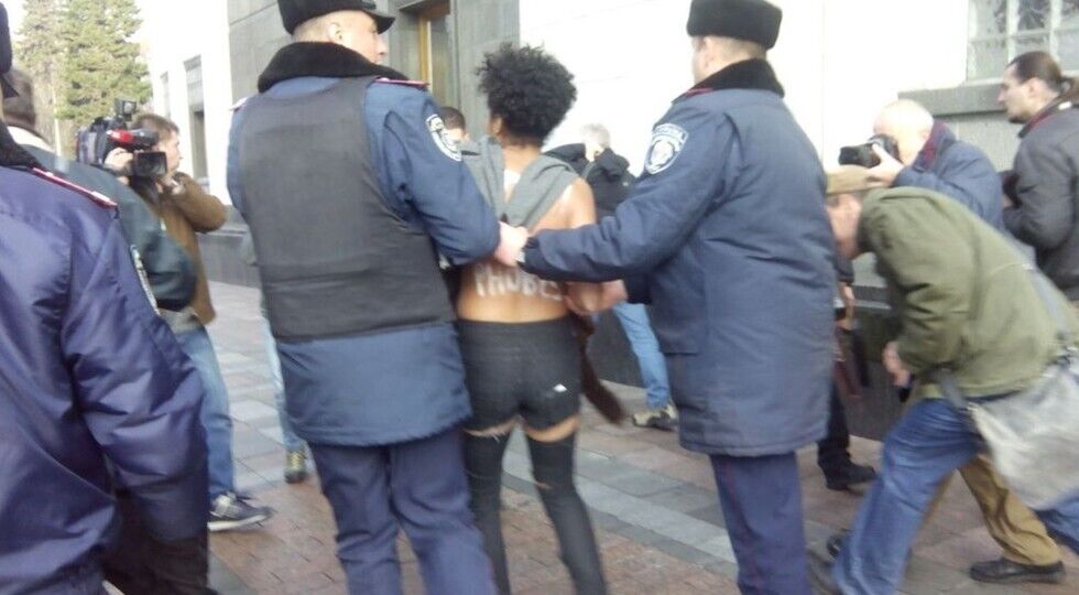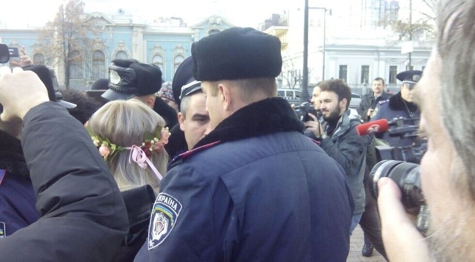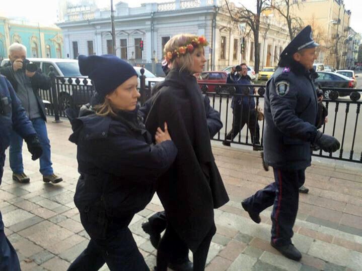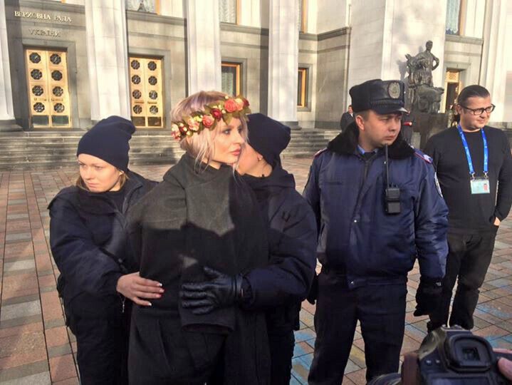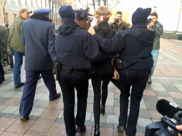 Около здания Верховной Рады полиция задержала двух активисток Femen. Фоторепортаж