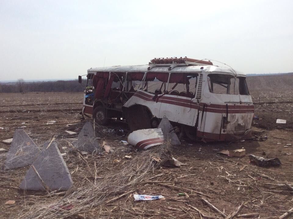 Под Горловкой на мине подорвался пассажирский автобус. Фоторепортаж