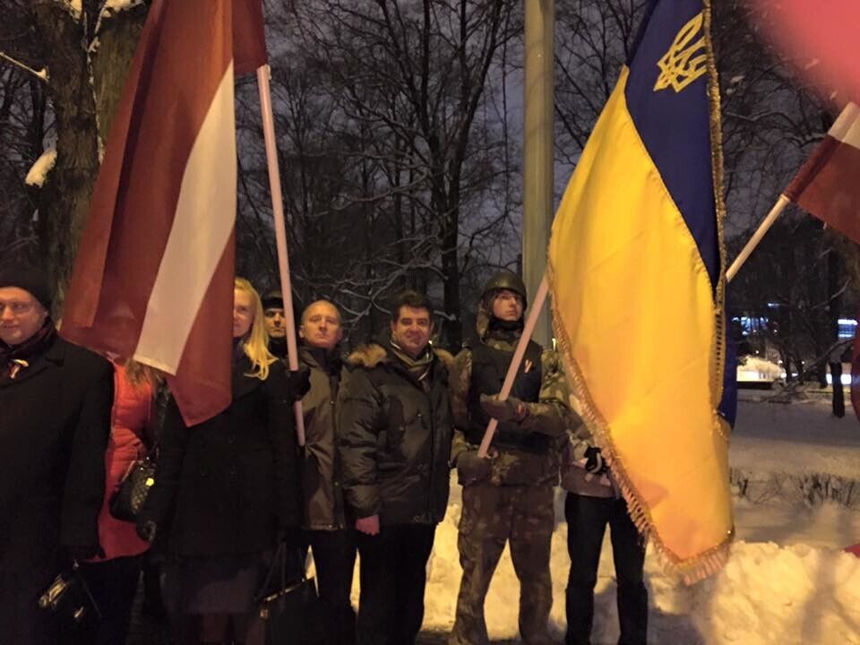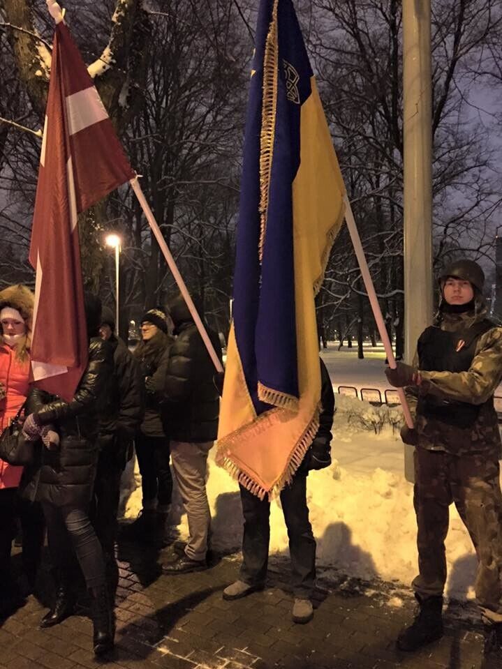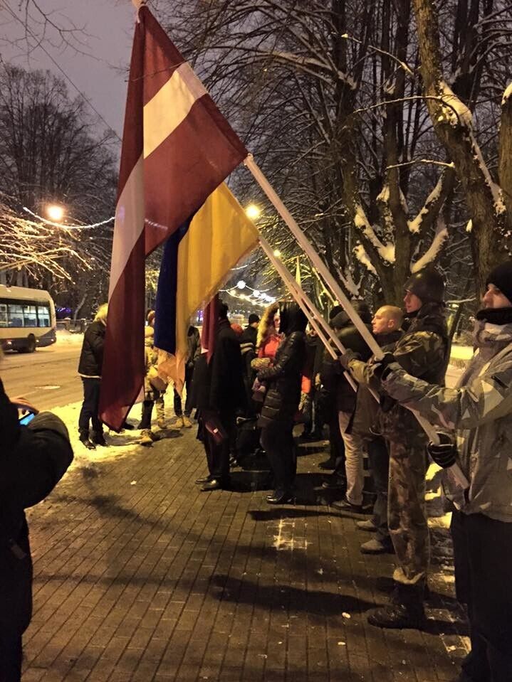 В столице Латвии под стенами посольства Украины состоялась акция в поддержку украинского народа в его борьбе против России. Об этом сообщается на странице украинского дипломатического представительства в Facebook. "Латвийская молодежь провела акцию возле посольства Украины в знак солидарности с Украиной в ее борьбе против российской агрессии", – говорится в сообщении.