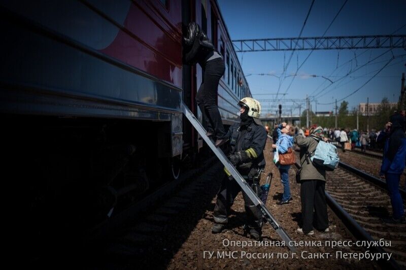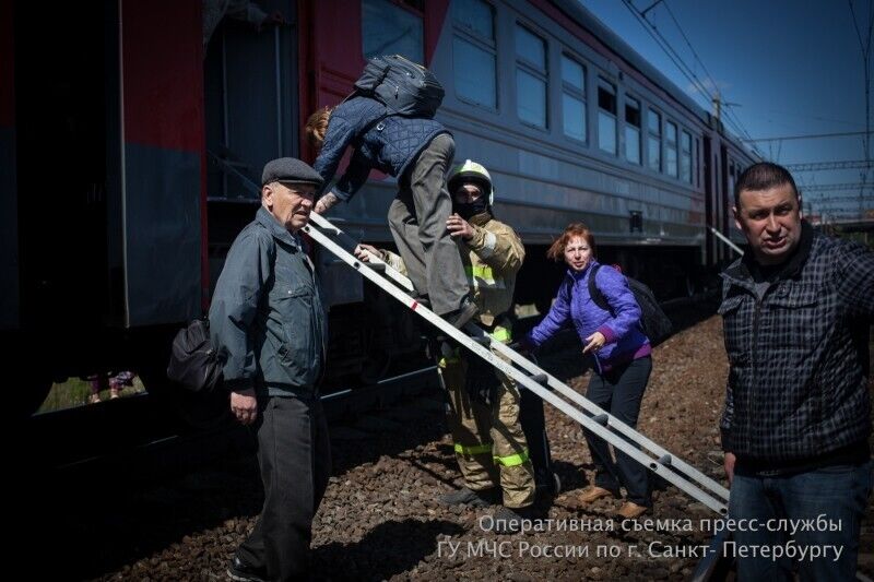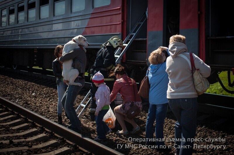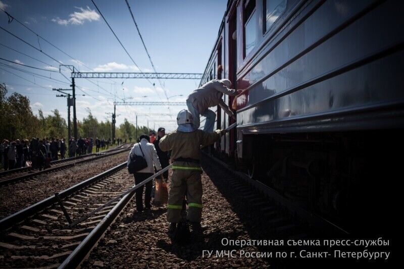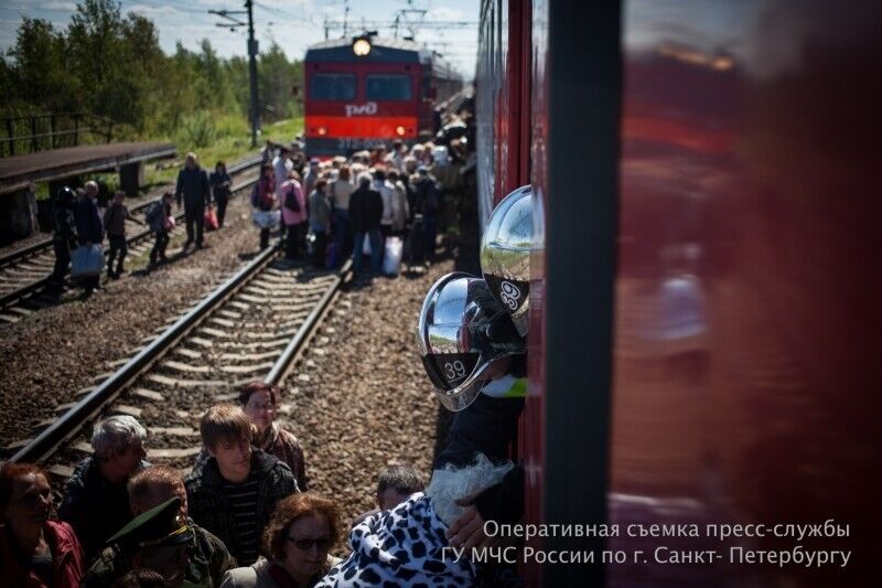 Под Санкт-Петербургом из-за задымления в вагоне поезда эвакуировали 1,2 тыс. пассажиров. Фоторепортаж