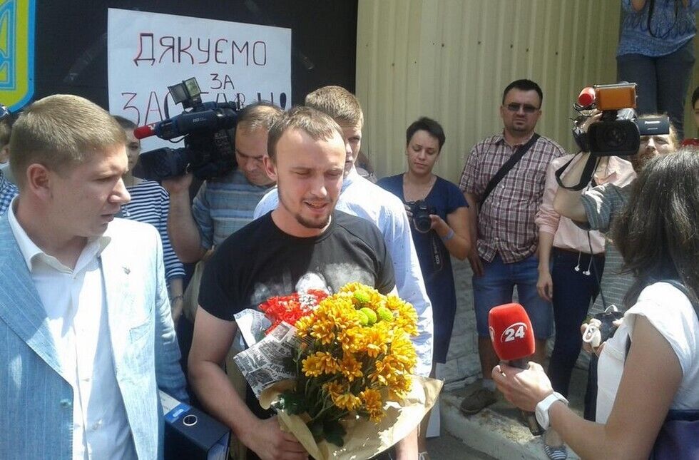 Подозреваемого в убийстве Бузины националиста выпустили под залог в 5 млн грн. Фоторепортаж