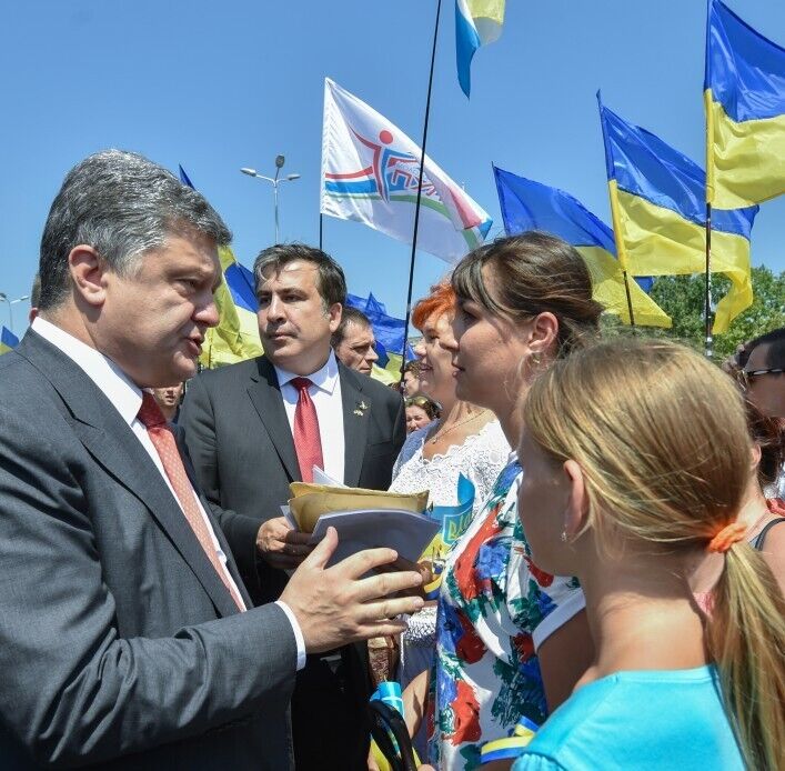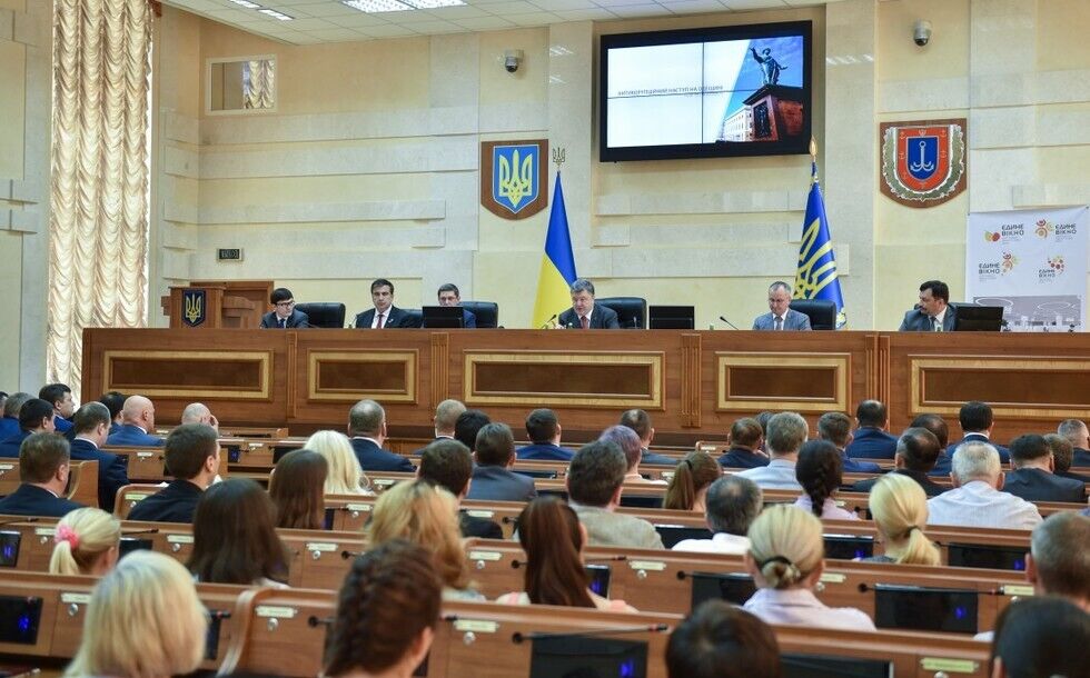 В среду, 8 июля, президент Украины Петр Порошенко находился с рабочим визитом в Одессе, где провел встречу с главами областных государственных администраций и руководителями силовых ведомств. На совещании президент поставил присутствующим задачи по укреплению безопасности в регионах, борьбе с коррупцией и контрабандой, а также по внедрению реформ. В частности, он призвал губернаторов инициировать законопроекты, необходимые для их работы. Глава государства сказал, что "отсутствие законодательства не является оправданием отсутствия реформ". Кроме того, президент призвал губернаторов учитывать его режим работы и трудиться без выходных и отпуска. На заседании днепропетровский и одесский губернаторы Валентин Резниченко и Михаил Саакашвили поссорились из-за законности строительства в Одессе Дома юстиции, разнимать чиновников пришлось президенту.