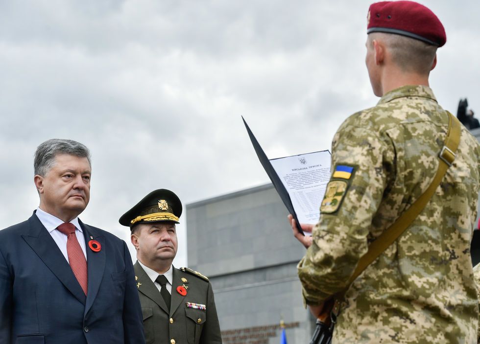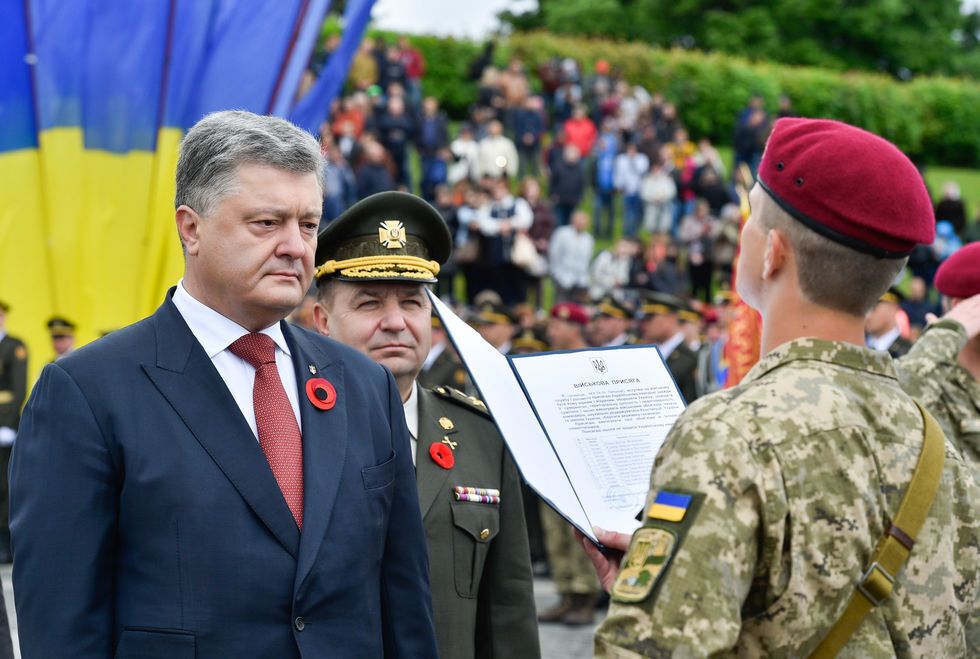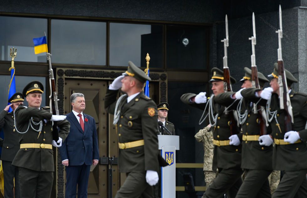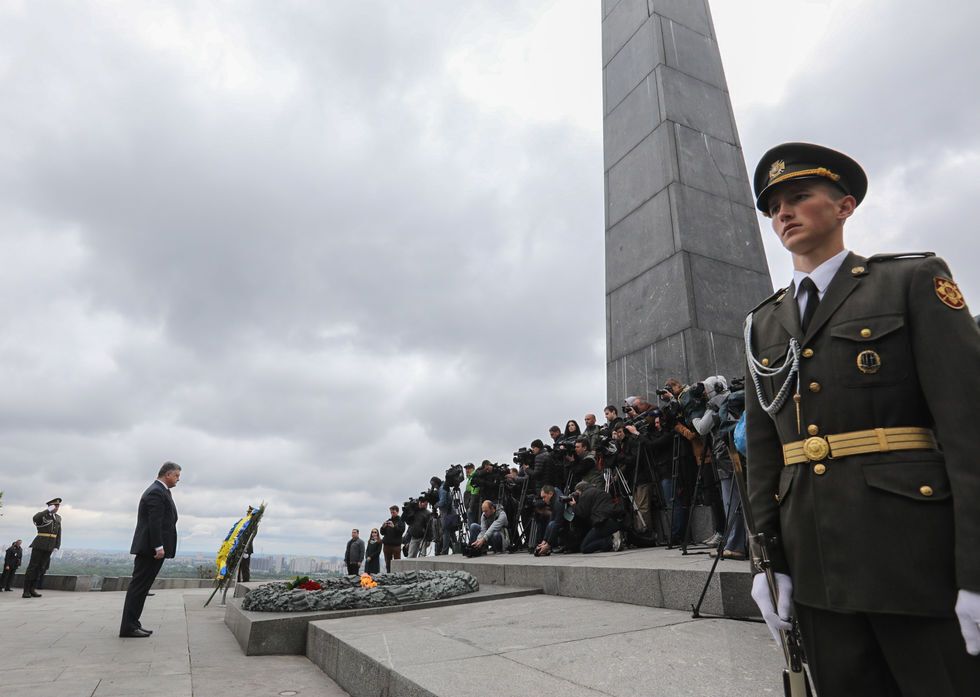 Во вторник, 9 мая, президент Украины Петр Порошенко принял участие в торжественных мероприятиях, посвященных 72-й годовщине победы над нацистской Германией во Второй мировой войне. В частности, президент возложил цветы у монумента Вечного огня в Киеве. Также Порошенко принял военную присягу военнослужащих отдельного полка президента Украины.