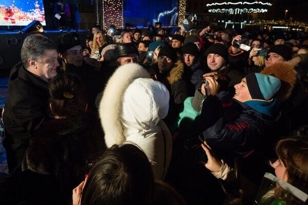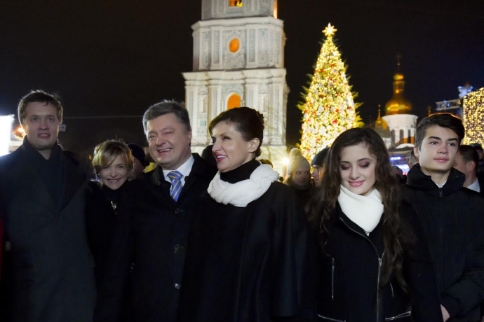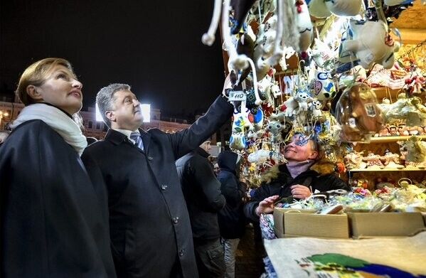 Вечером 26 декабря президент Украины Петр Порошенко с семьей посетил новогоднюю ярмарку на Софийской площади в Киеве, сообщает пресс-служба главы государства. Президент пообщался с киевлянами и гостями столицы, поздравил их с наступающими праздниками. Для своего внука Порошенко приобрел сувенир – вышитую мягкую игрушку. Также семья президента повесила несколько украшений на главную елку страны, которая торжественно зажглась 19 декабря, в День святого Николая.