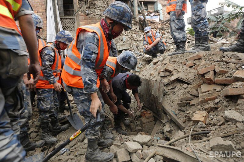 После мощного землетрясения в Непале продолжаются поисковые работы. Фоторепортаж