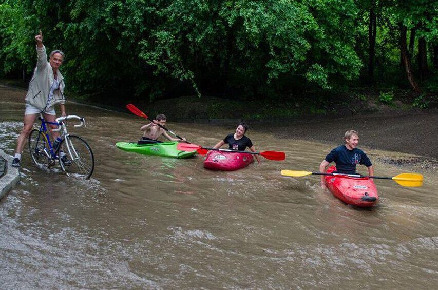 После сильного дождя жители Львова передвигаются по городу на каноэ. Фоторепортаж