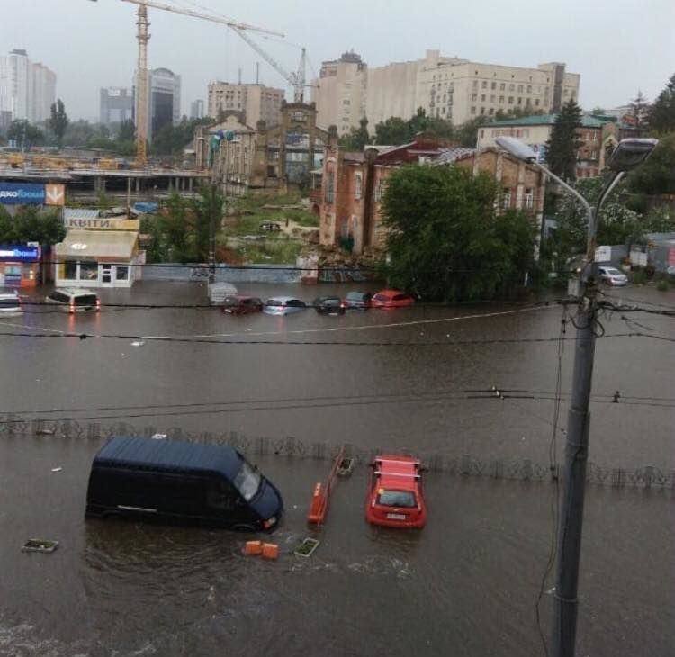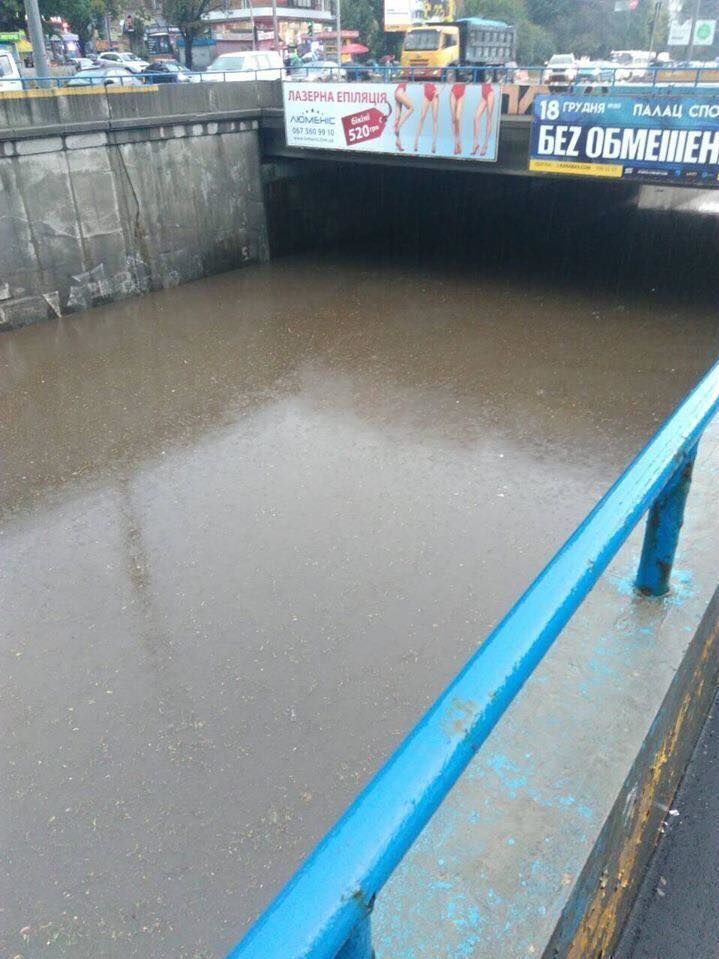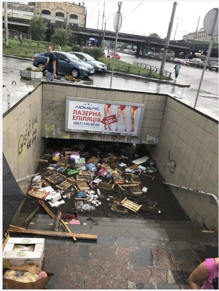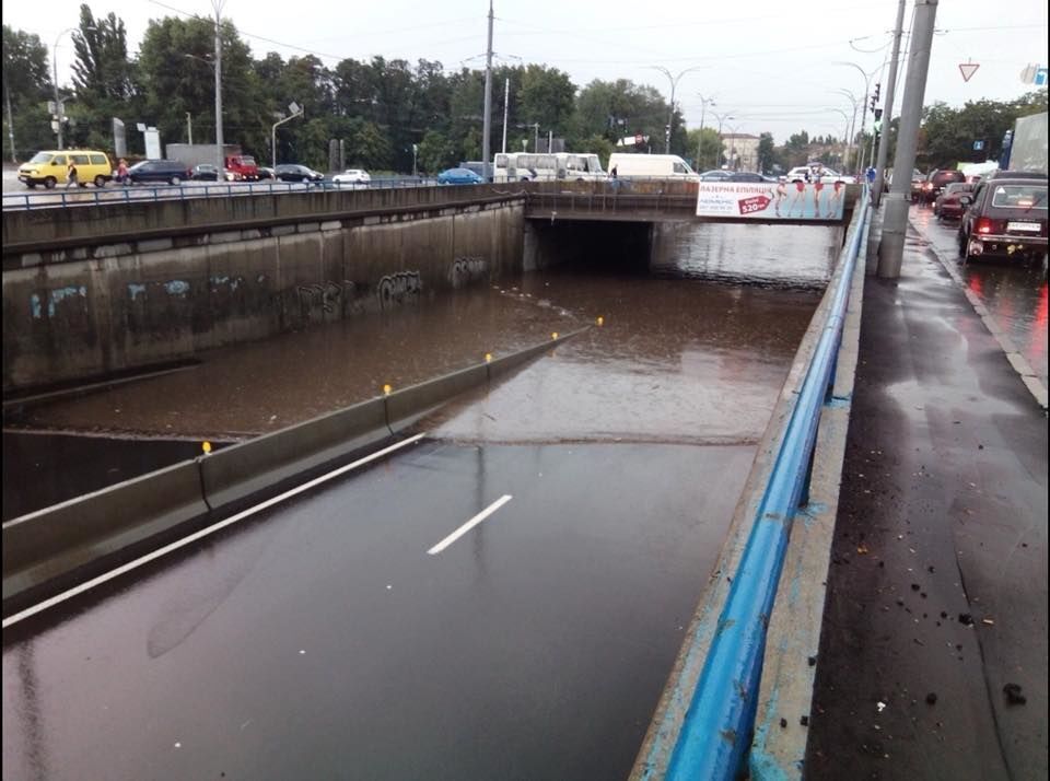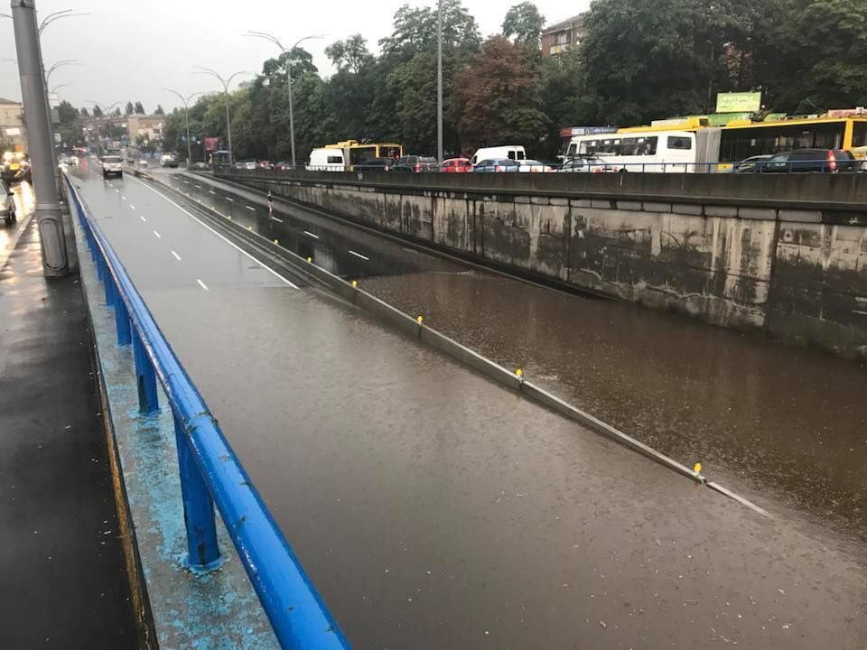 25 июля в Киеве прошли ливни, которые местами вызвали в городе транспортный коллапс. Пользователи соцсетей опубликовали фотографии, сделанные после дождя возле метро "Дорогожичи" и Шулявки. Из-за дождя были затоплены подземные переходы и некоторые дороги. Из-за непогоды в Подольском районе Киева обвалилась часть Кирилловского путепровода.