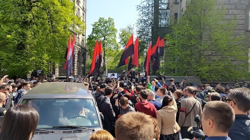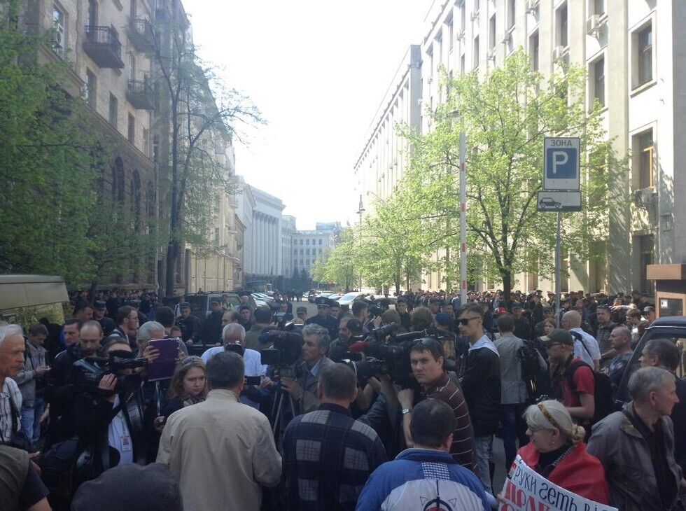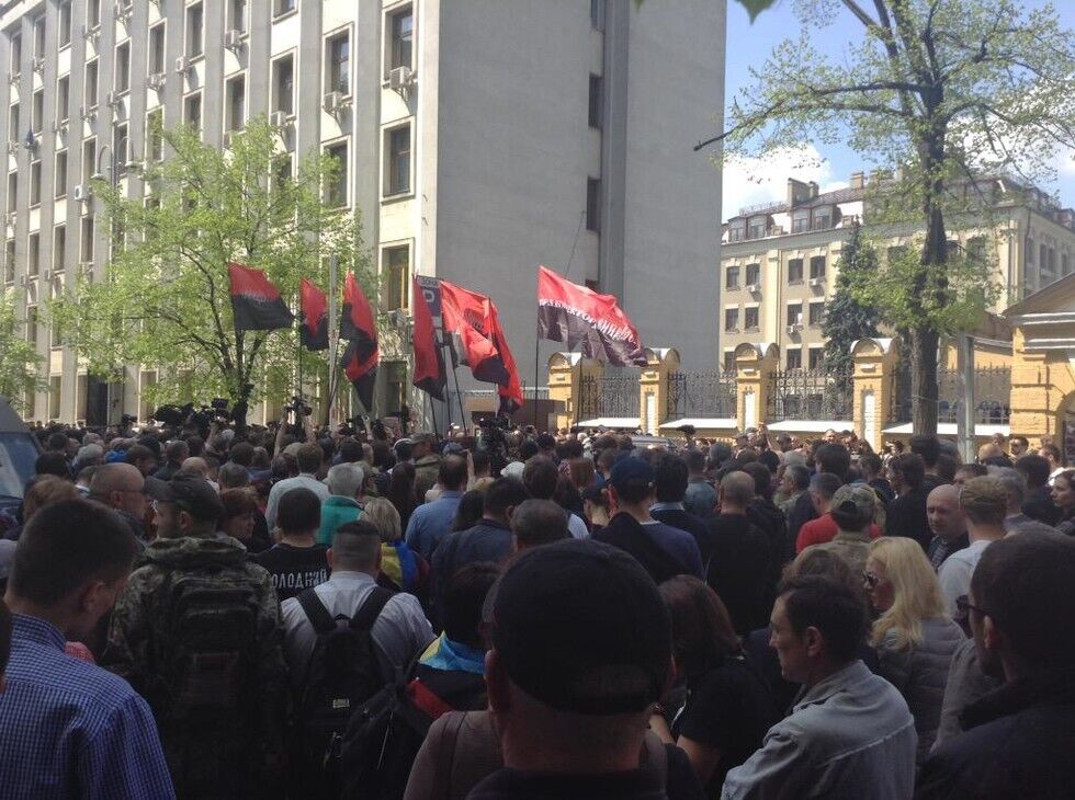 Представители "Правого сектора" пикетировали Администрацию Президента в Киеве с требованием наказать тех людей, которые 28 апреля в Днепропетровской области пытались разоружить их бойцов.