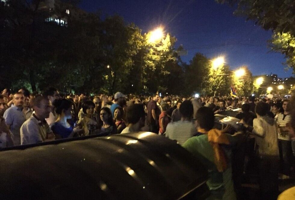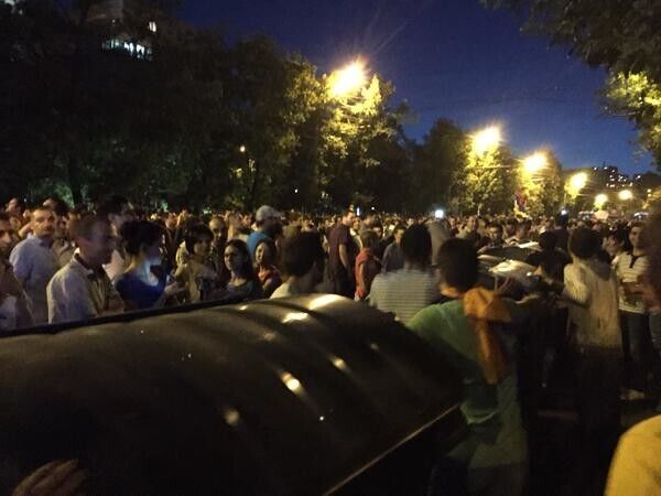 Вечером во вторник, 23 июня, в центре Еревана возобновились акции протеста против повышения тарифов на электричество. После утреннего разгона демонстрантов, как сообщают очевидцы, митингующих стало в разы больше. Участники акции начали строить первые баррикады, используя мусорные баки. Полиция призывает митингующих не сооружать их, а также обещает не предпринимать какие-либо действия, "пока собрание носит мирный характер". Один из участников протеста, Арсен Аветисян, написал в Twitter, что на митинге, кроме флагов Армении, появились флаги Украины и Евросоюза.