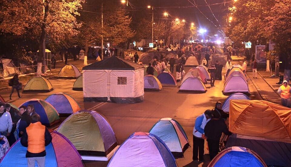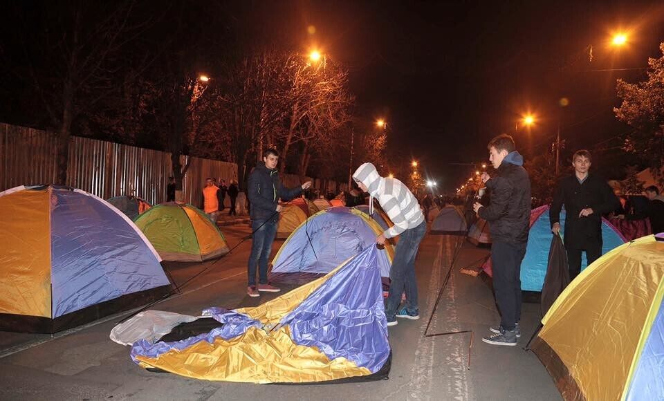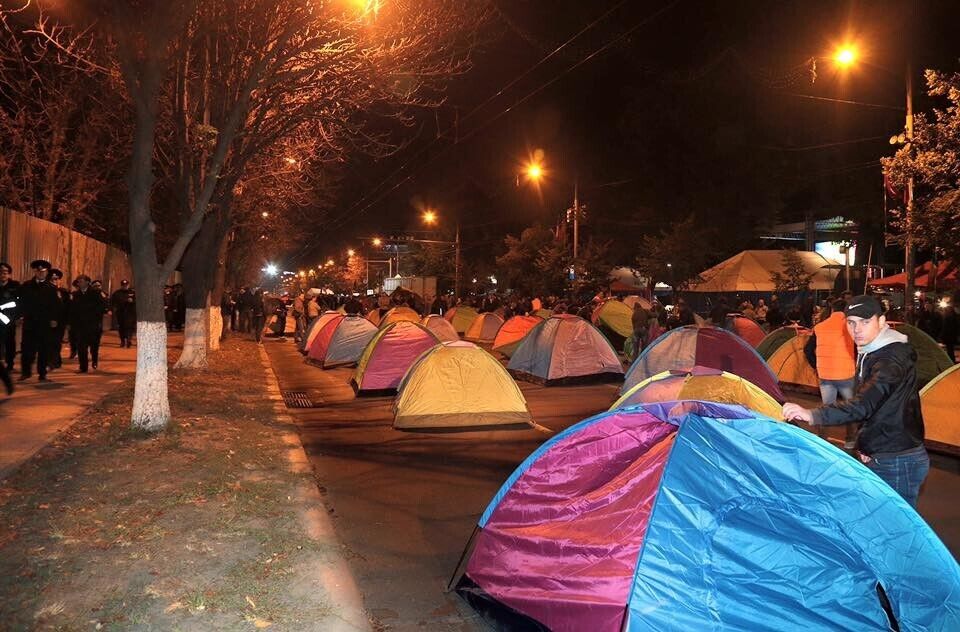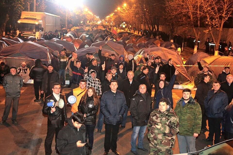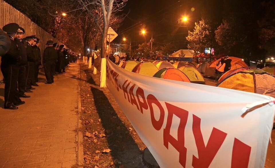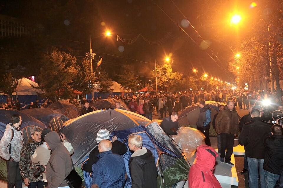 Сторонники оппозиционных сил Молдовы – партии социалистов и "Нашей партии" – установили палатки на проезжей части проспекта Штефана Чел Маре в Кишиневе. Они требуют отставки президента страны Николае Тимофти. Палаточный городок занял два квартала центральной транспортной артерии столицы. Столкновений с полицией не было, написал на своей странице в Facebook один из лидеров протестного движения, депутат парламента Молдовы Игорь Додон. Он предположил, что движение в центре Кишинева будет разблокировано к началу рабочей недели, но пообещал, что оппозиция продолжит акции протеста, пока президент не покинет свой пост.