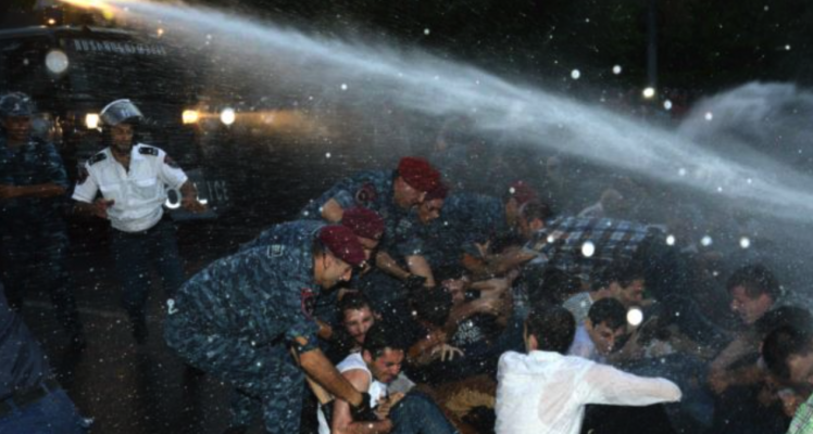 На рассвете полиция разогнала сидячую акцию протеста против повышения тарифов на электроэнергию в центре Еревана. Силовая операция началась в 05.30 после предупреждений со стороны полиции о незаконном характере акции. В ходе разгона демонстрации полиция использовала водометы и спецсредства.