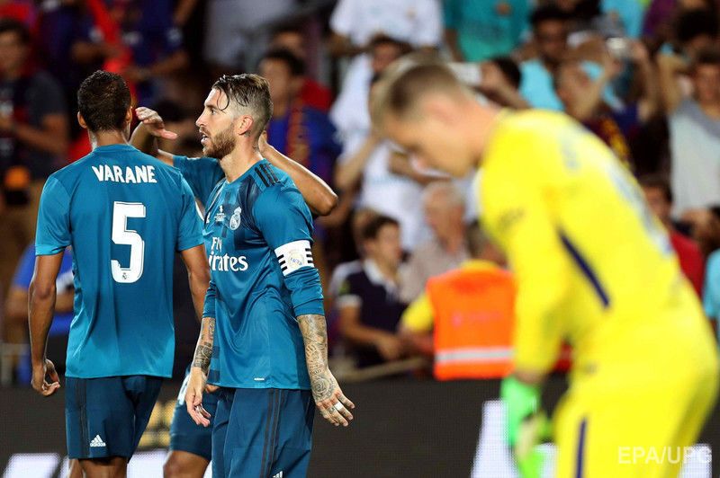 13 августа мадридский "Реал" обыграл "Барселону" со счетом 3:1 в первом матче за Суперкубок Испании. Фотоотчет об игре опубликовало агентство EPA. Счет в матче на 50-й минуте открыл игрок "Барселоны" Жерар Пике ударом по своим воротам. На 77-й минуте его одноклубник Лионель Месси сравнял счет, но через три минуты игрок "сливочных" Криштиану Роналду вернул лидерство "Реалу". На 90-й минуте окончательный счет установил полузащитник мадридской команды Марко Асенсио. Ответный матч пройдет 16 августа.