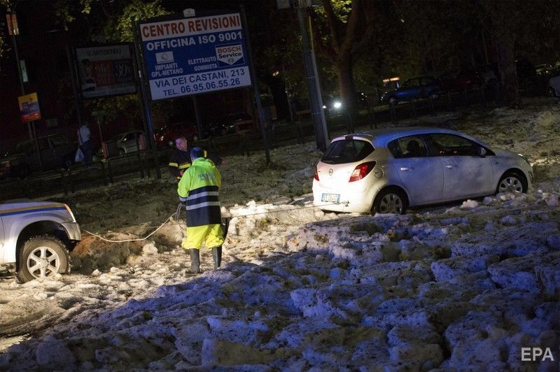 Рим затопило в результате сильного ливня с градом и снегом. Фоторепортаж
