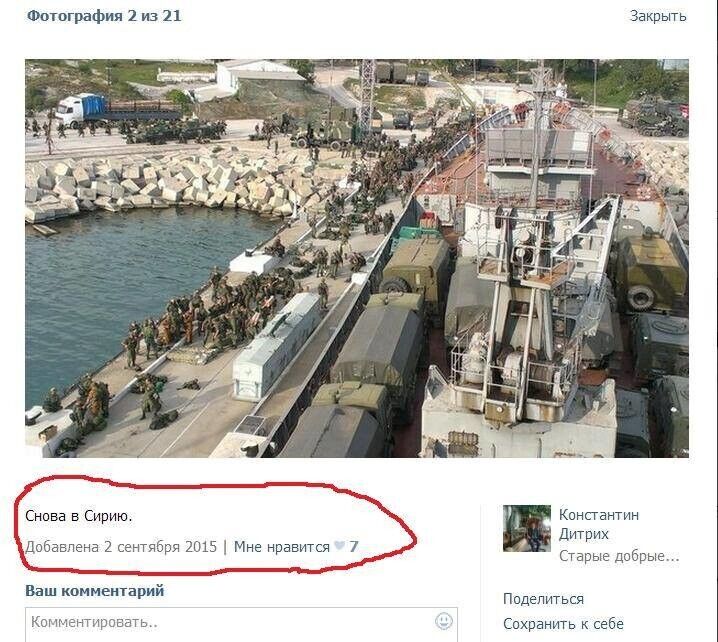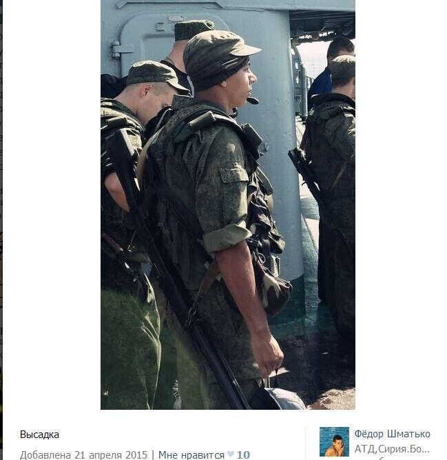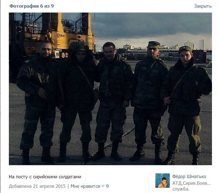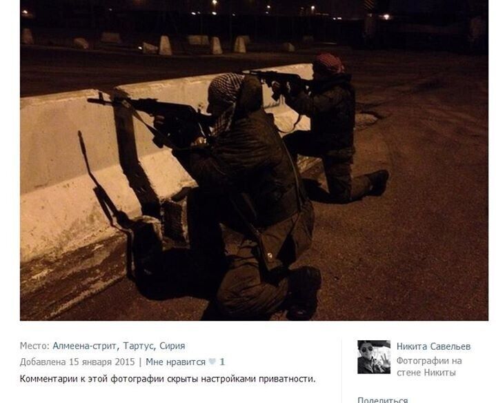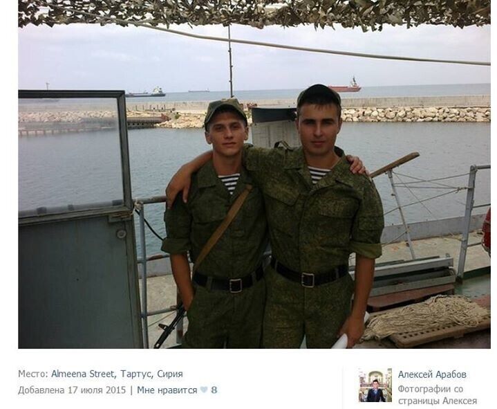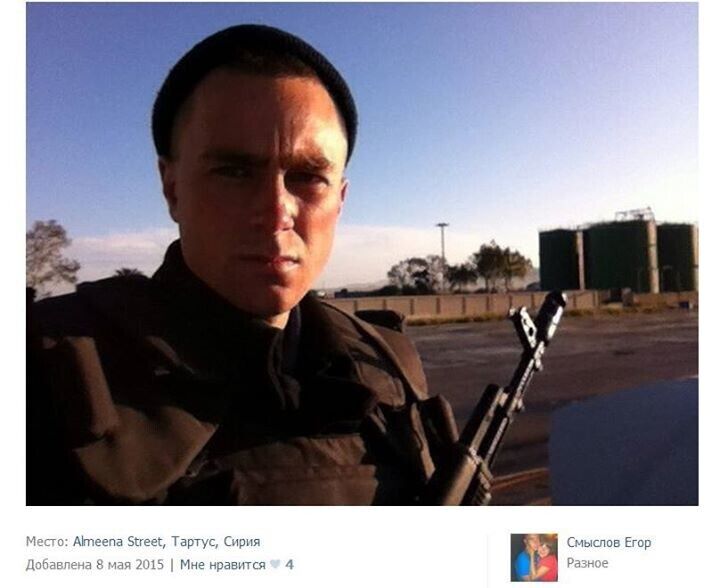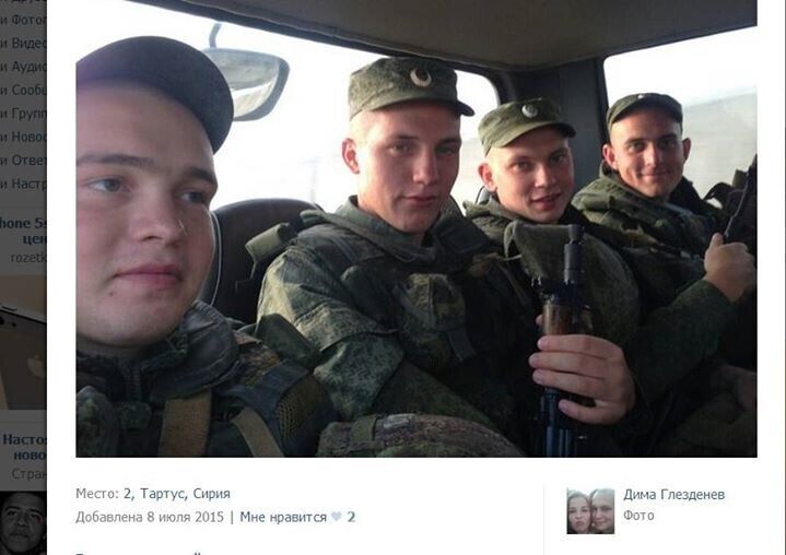 Киевлянин Николай Махно опубликовал в Facebook несколько подборок фотографий из социальных сетей, на которых российские военные фотографируются в Сирии. При этом они даже не отключают функцию геопозиционирования в своих мобильных телефонах, что позволяетнаходить эти фотографии с помощью поиска по геотегам. Махно отмечает, что несмотря на заявления российских официальных лиц, отрицающих участие российской армии в боевых действиях в Сирии, фотографии российских солдат свидетельствуют о том, что они все чаще прибывают воевать за Асада. "Едут уже не только так называемые инструкторы, но и целые группы спецназа и морской пехоты. Основная масса российских солдат сейчас проходит через район Тартуса, но встречаются они и в Хомсе, в Латакаи, в Дамаске, в Айн Ас-Сода, в Саламия, в Хаме и так далее. Некоторые части несут службу в Сирии по четыре–шесть месяцев, иногда "маскируются" под арабов", — отметил Махно.