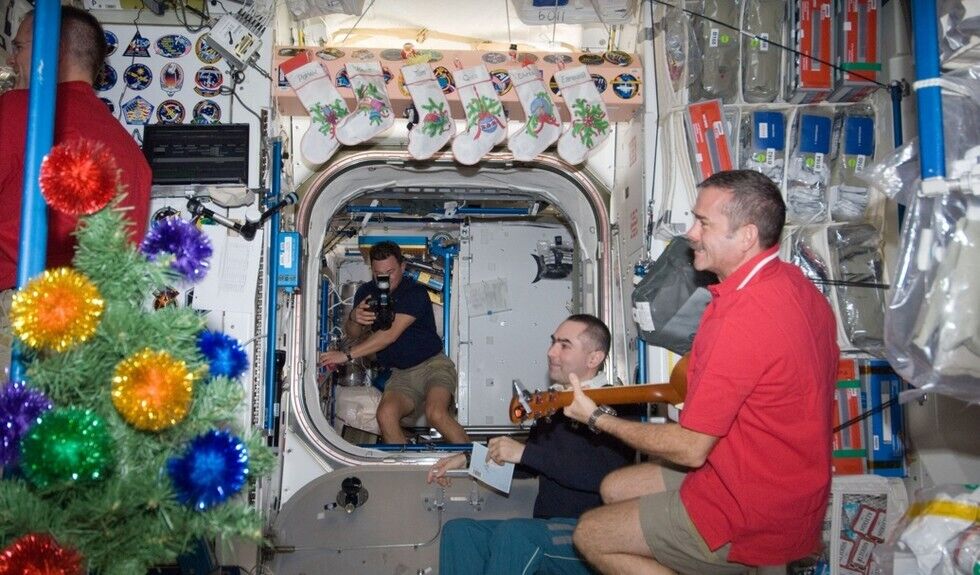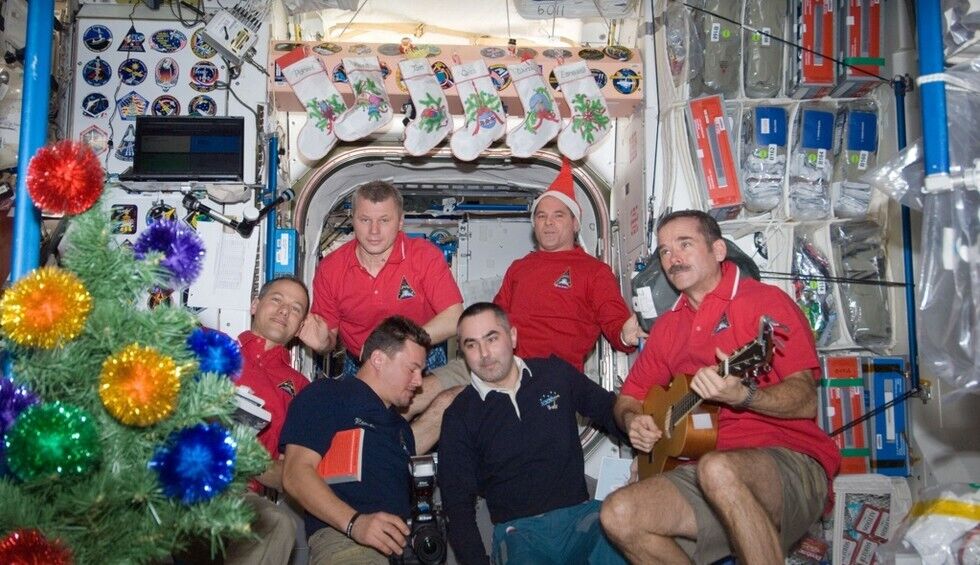 Экипаж Международной космической станции (МКС) отпраздновал Рождество на орбите. Согласно данным NASA, на борту МКС сейчас находятся космонавты Юрий Маленченко, Сергей Волков и Михаил Корниенко, астронавты NASA Тимоти Копра и Скотт Келли, а также британский астронавт Тимоти Пик. На фотографиях можно увидеть традиционную праздничную ель и растяжку с надписью "С Новым годом" на русском языке.