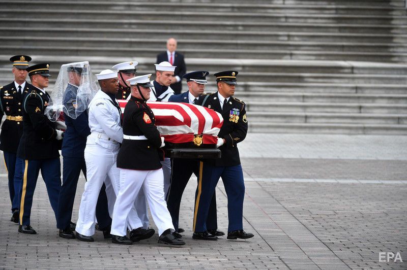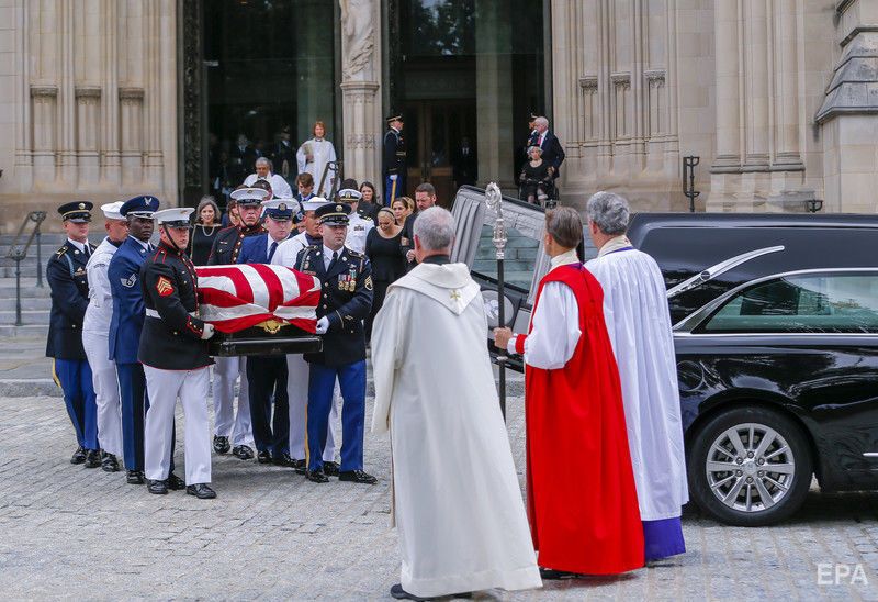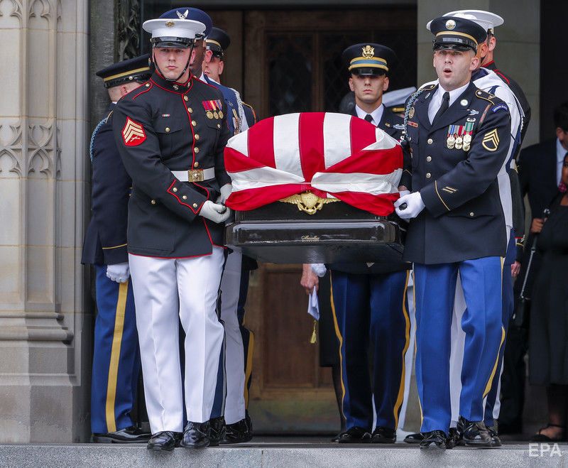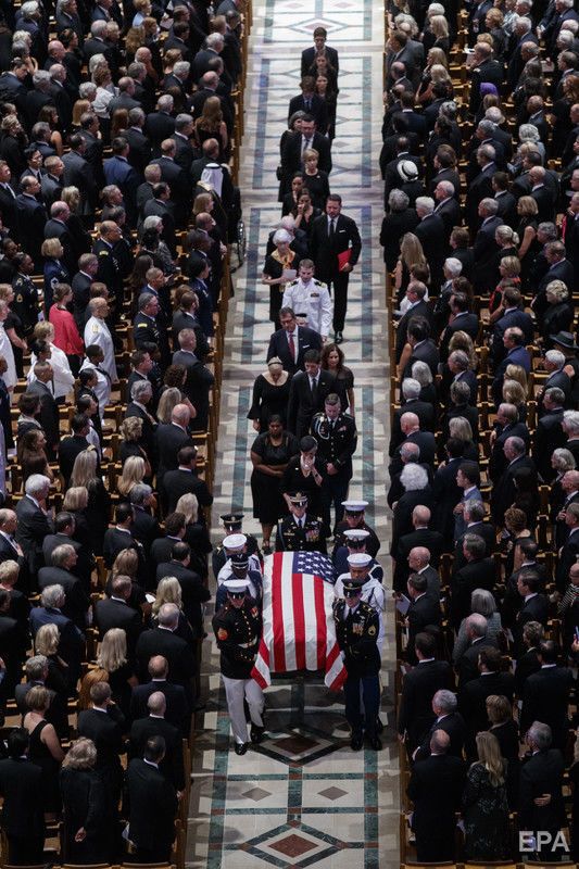 1 сентября в Вашингтонском национальном соборе прошла мемориальная служба, посвященная сенатору-республиканцу Джону Маккейну, который умер 25 августа. Фото обнародованы агентством ЕРА. На мемориальной службе присутствовали семья сенатора, экс-президенты США, политики, дипломаты, деятели культуры и искусства, представители церкви, международные гости. На церемонии выступили экс-президенты страны Джордж Буш – младший и Барак Обама. Сегодня сенатор Маккейн будет похоронен на территории Военно-морской академии в Аннаполисе, выпускником которой он был.