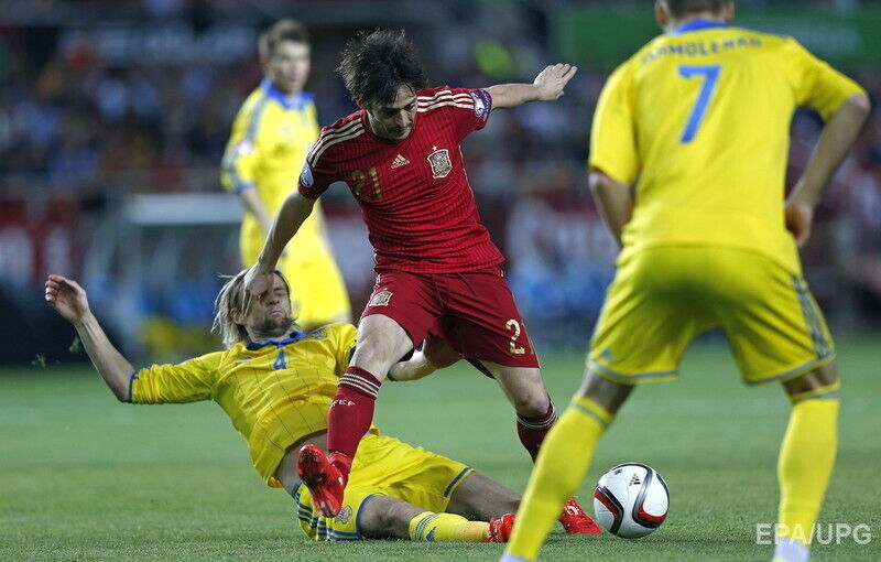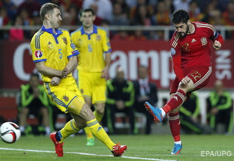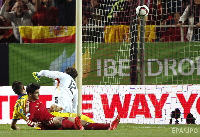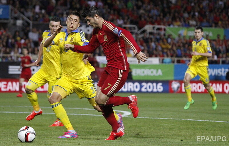 Национальная сборная Украины проиграла сборной Испании в матче пятого тура квалификационного раунда чемпионата Европы 2016 года. Поединок в Севилье завершился со счетом 1:0 в пользу хозяев поля. Единственный гол в матче забил на 29-й минуте Альваро Мората. После этого поражения команда Михаила Фоменко с 9-ю очками остается на третьем месте, а испанцы теперь делят первое и второе место со сборной Словакии.