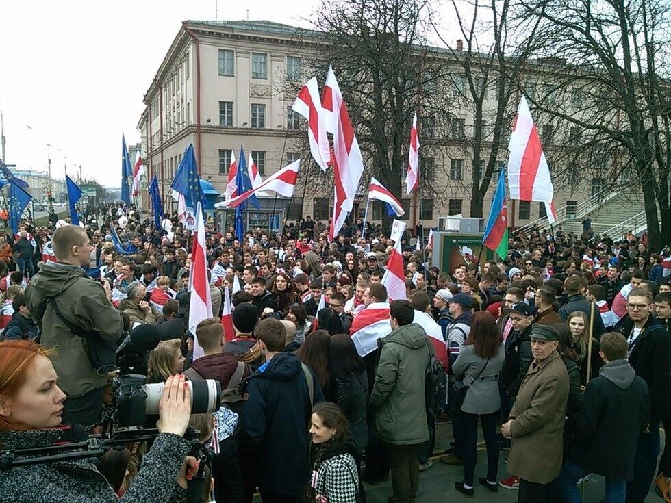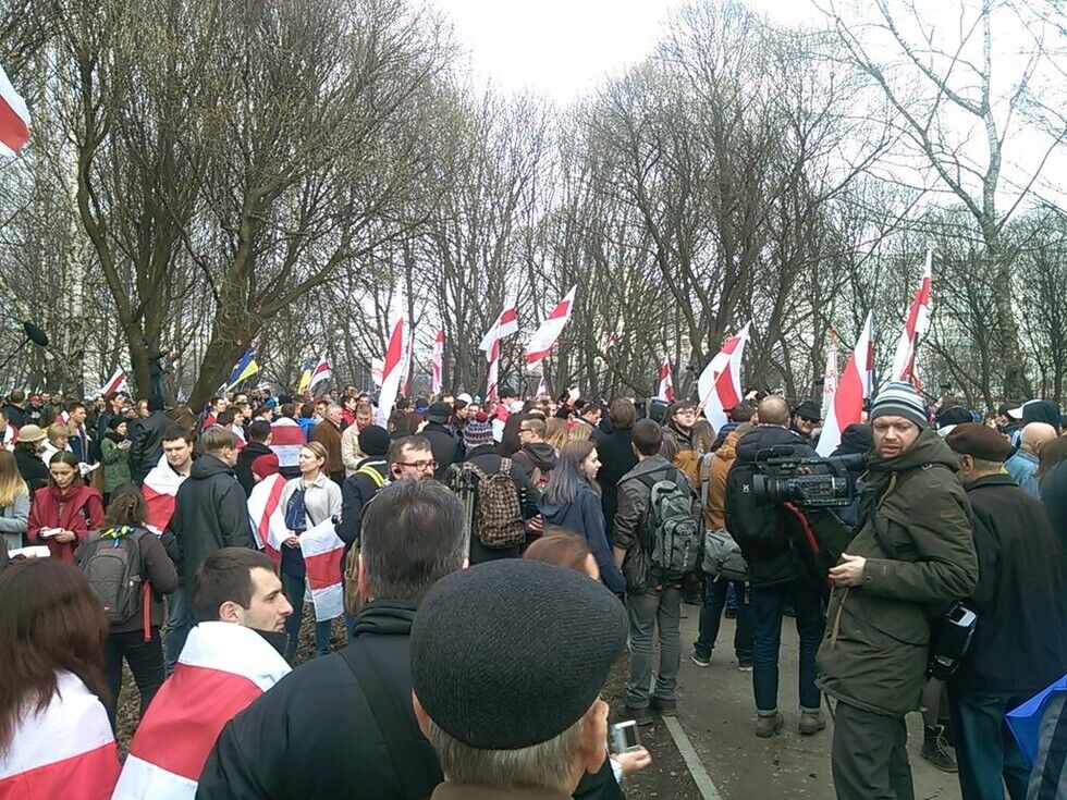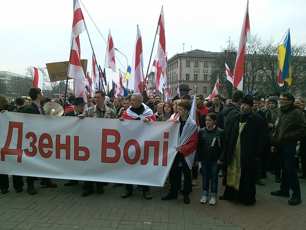 В среду, 25 марта, в столице Беларуси Минске состоялись шествие и митинг по случаю Дня воли – 97-й годовщины провозглашения Белорусской Народной Республики. В этом году власти разрешили проведение акции (на официальном уровне этот праздник не отмечается), но согласовали ее не вечером, как планировали организаторы, а в рабочие часы. По данным "Белорусского партизана", в митинге участвовали около 1000 человек. Многие их них держали в руках бело-красно-белые флаги, флаги Украины и Евросоюза. Кроме того, у участников акции были таблички со словами поддержки Украины и ее территориальной целостности. По информации "Радио Свобода", во время акции и после нее были задержаны несколько человек.
