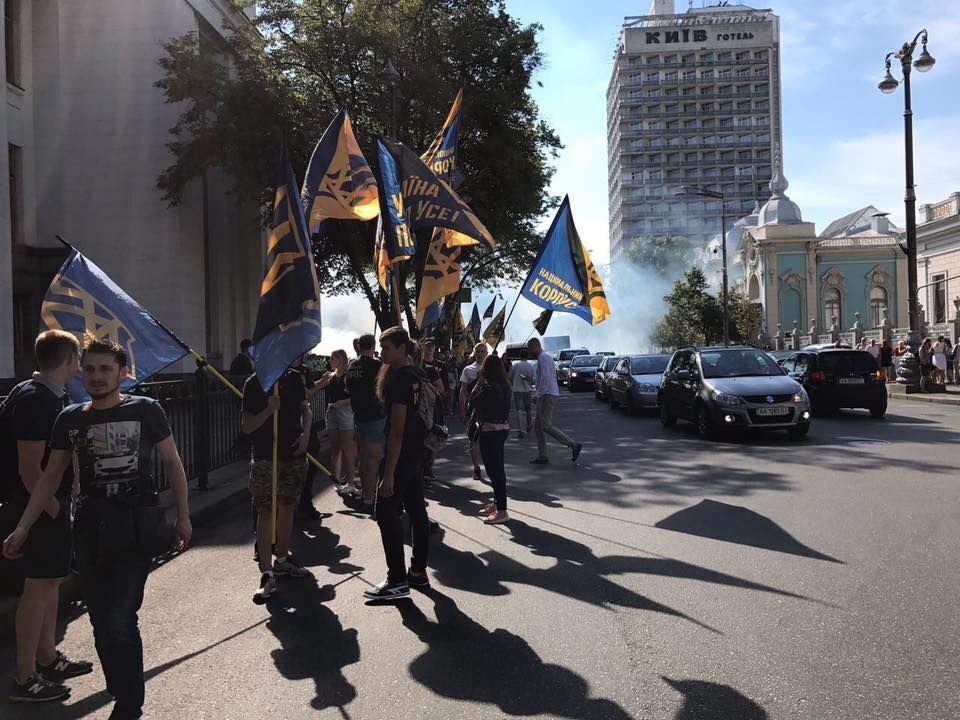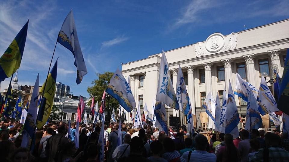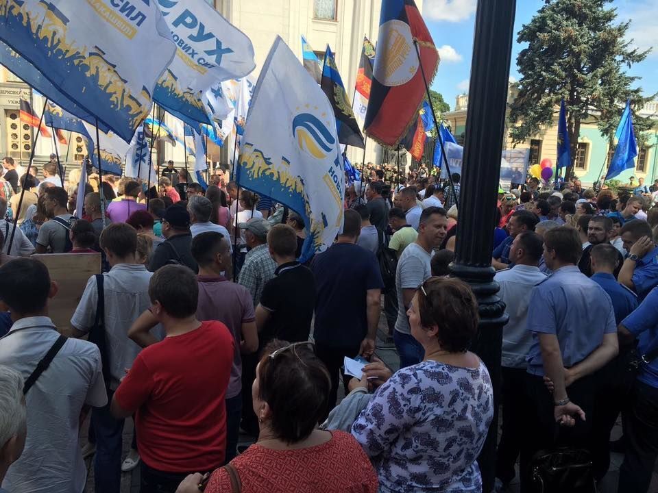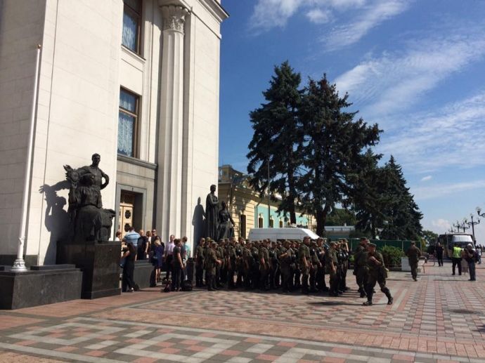Утром 13 июля сотни людей пришли под Верховную Раду Украины, они требуют отмены депутатской неприкосновенности и проведения досрочных парламентских выборов. Охрана здания парламента усилена, присутствуют полицейские и нацгвардейцы. "Украинская правда" сообщает, что активисты, в частности представители "Национального корпуса" (бывший "Азов"), перекрыли выходы из Рады и боковой выезд для депутатов. Полиция перекрыла улицу Грушевского.