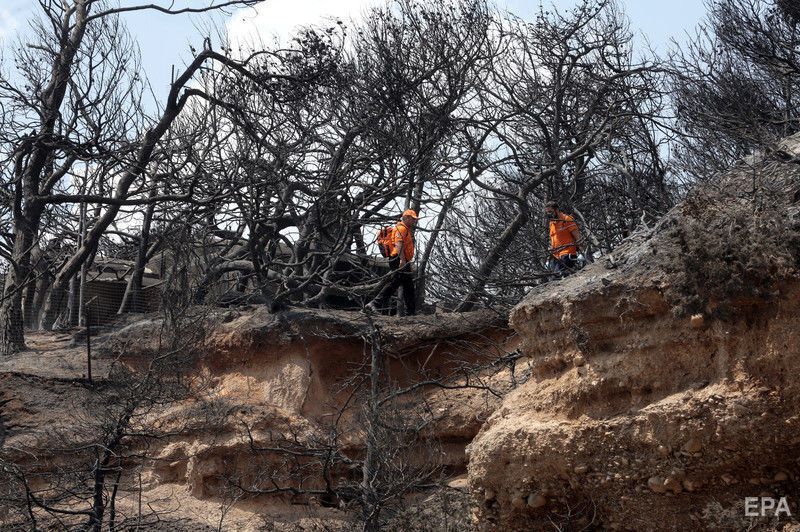 Спасатели в Греции продолжают искать пропавших без вести из-за лесных пожаров. Фоторепортаж