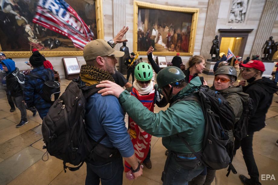 6 января в Вашингтоне сторонники президента США Дональда Трампа штурмом взяли здание Конгресса, где проводили заседание, посвященное победе Джо Байдена на президентских выборах. Идти к Капитолию людей призвал Трамп, он обещал пойти за ними, но сам уехал в Белый дом и наблюдал за штурмом по телевизору, утверждает CNN. Протестующие разбили стекло входной двери и проникли внутрь помещения. По данным СМИ, в ходе штурма огнестрельное ранение получила женщина, она госпитализирована в критическом состоянии. Фотографии из Вашингтона опубликовало агентство ЕРА.