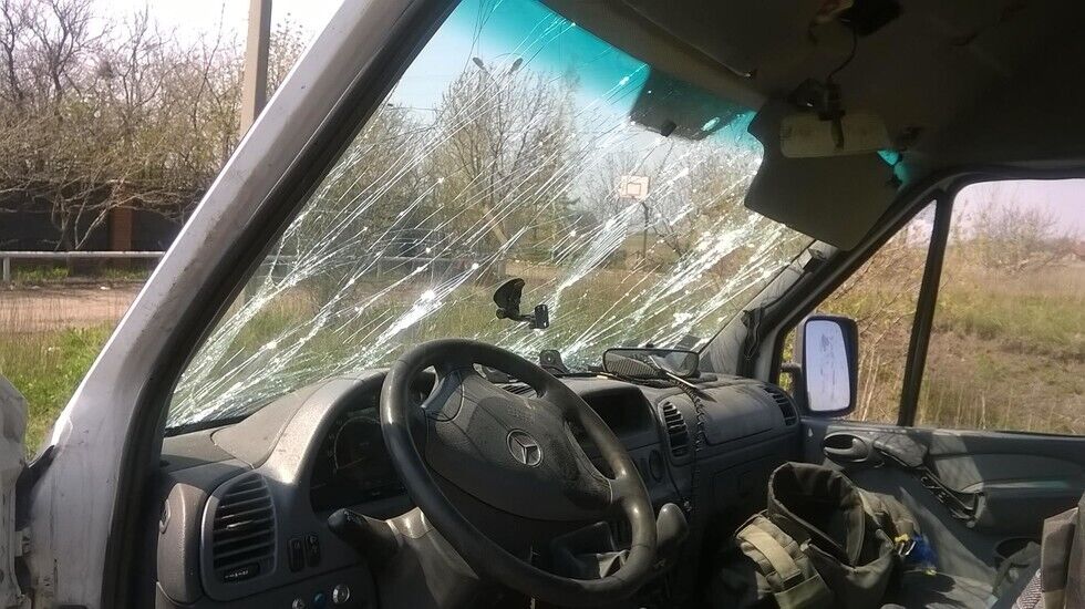 Террористы расстреляли под Широкино машину скорой помощи. Фоторепортаж