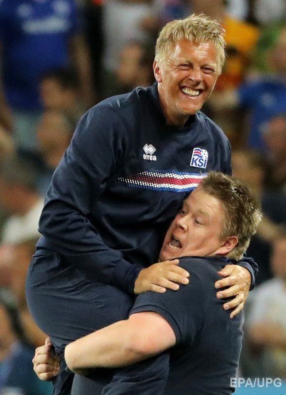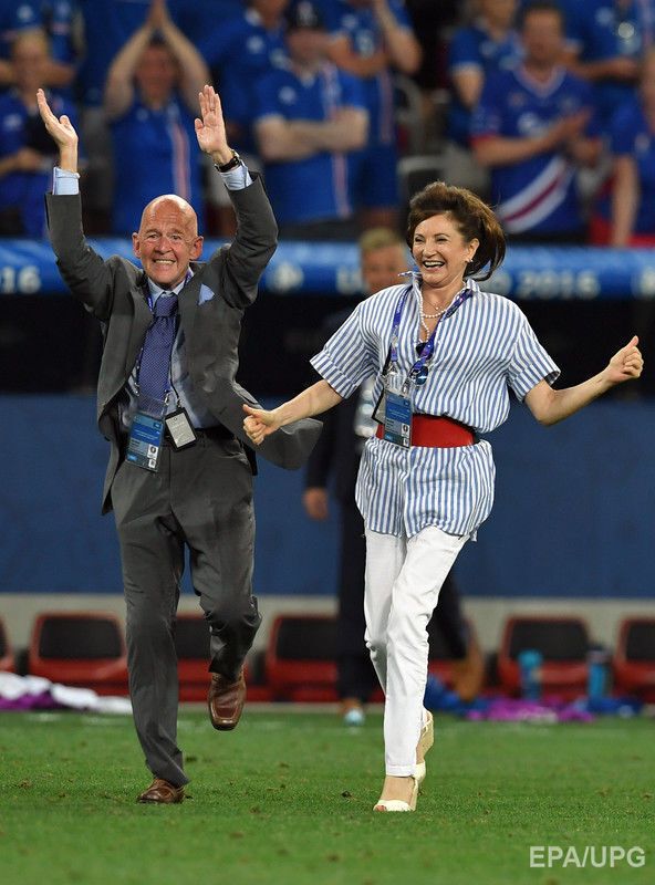 Тренер "на ручках" и первая леди на поле. Как исландцы праздновали победу над Англией. Фоторепортаж