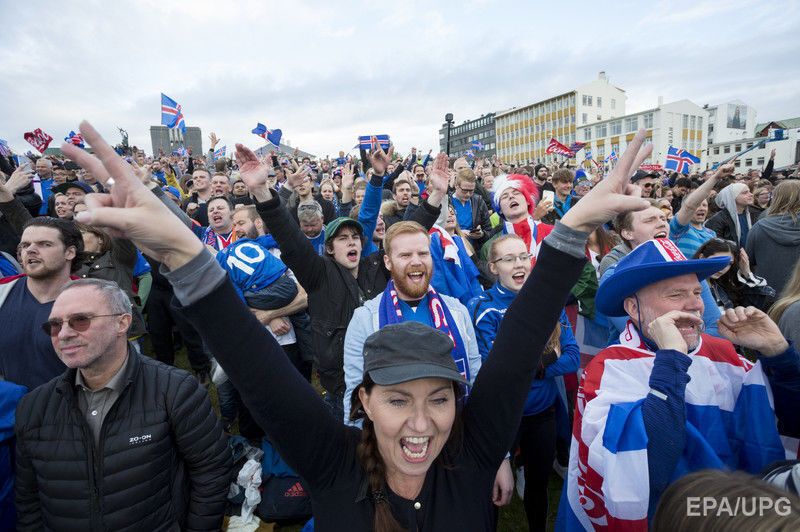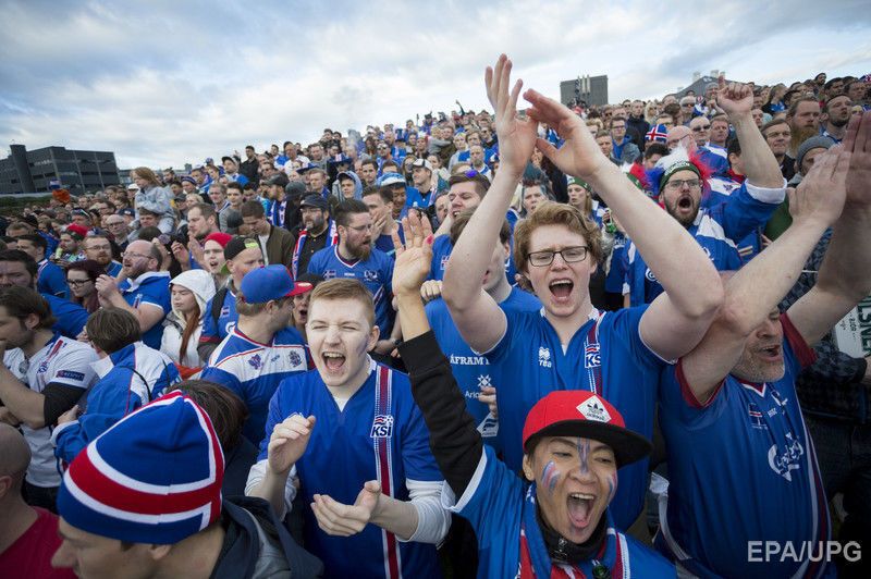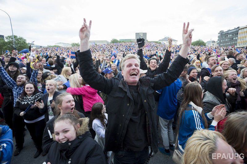 Футболисты сборной Исландии и болельщики команды 27 июня отмечали выход в четвертьфинал футбольного турнира Евро 2016 после триумфальной победы в матче над англичанами. Матч завершился со счетом 2:1 в пользу исландцев. Сборная Исландии стала самой громкой сенсацией в стадии 1/8 финала Евро 2016 – команда, которая выступает на чемпионатах Европы впервые, не только вышла из группы, не проиграв ни одного матча, но и в плей-офф выбила из турнира родоначальников футбола – сборную Англии.