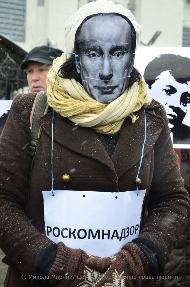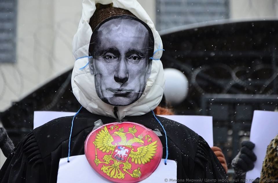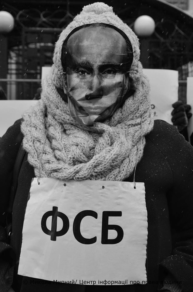 У посольства РФ в Киеве прошла акция-перформанс в поддержку задержанных украинских журналистов. Фоторепортаж