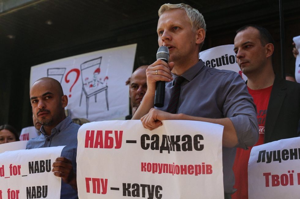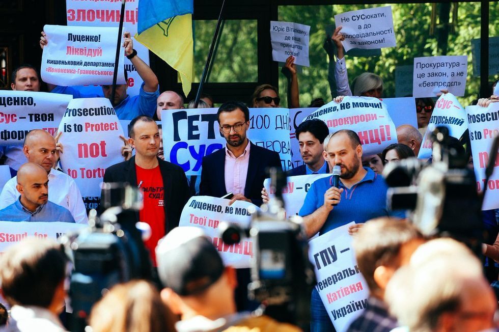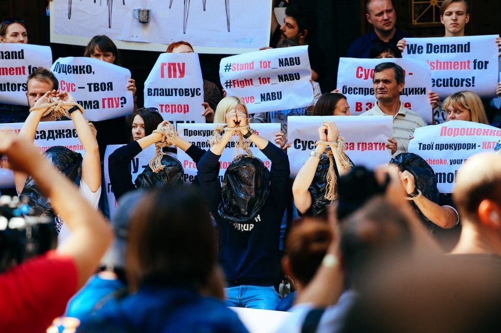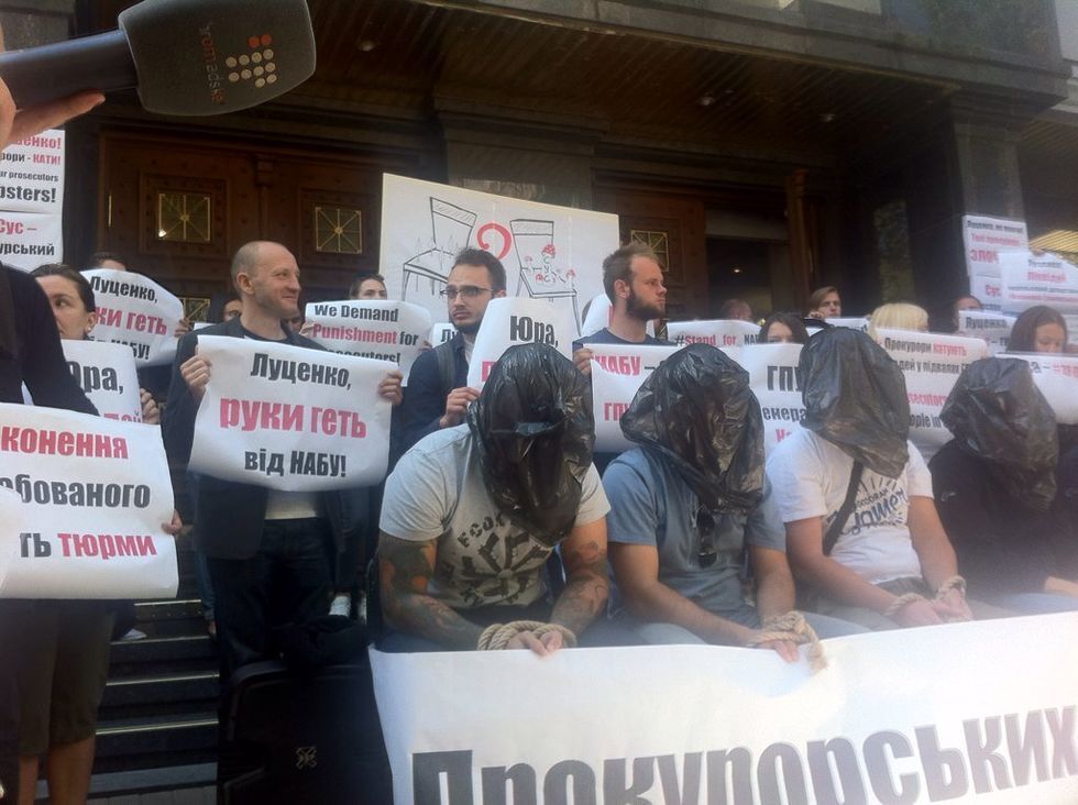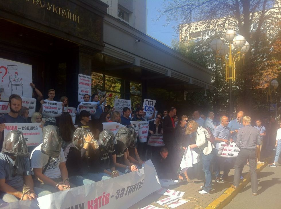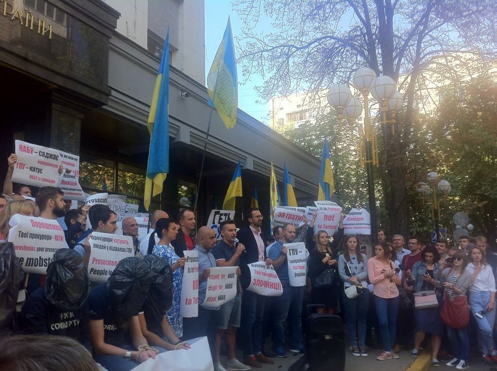 17 августа в Киеве активисты и народные депутаты провели акцию протеста у здания Генеральной прокуратуры Украины в поддержку Национального антикоррупционного бюро (НАБУ). Участники протеста требовали расследовать информацию о пытках сотрудников НАБУ. В митинге участвовали народный депутат от "Самопомочі" Егор Соболев, нардепы от Блока Петра Порошенко Мустафа Найем и Сергей Лещенко, экс-заместитель генерального прокурора Виталий Касько.