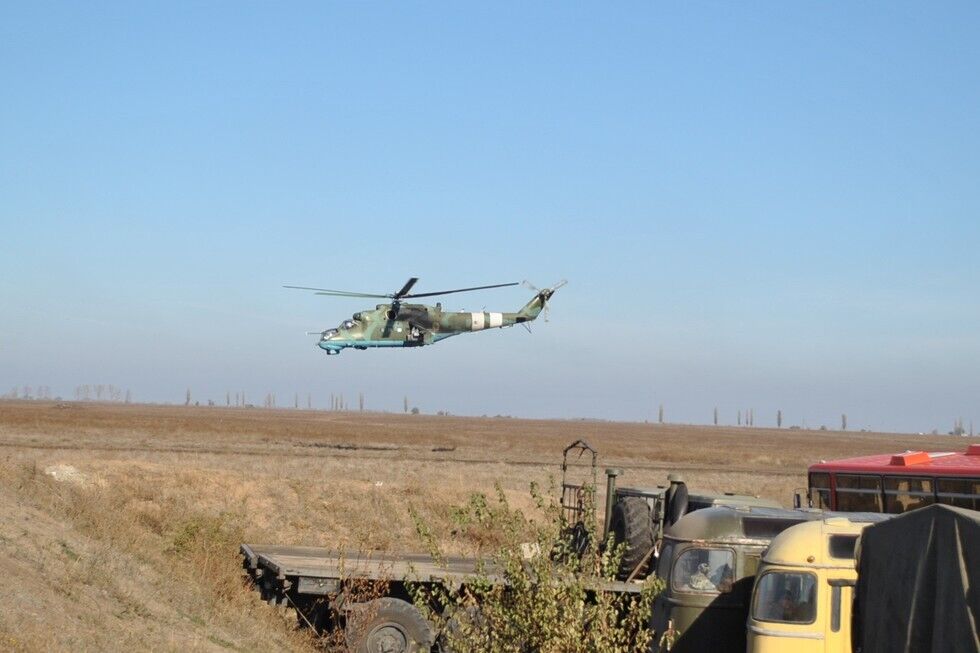 В Николаевской области в 235 центре подготовки воинских частей и подразделений прошла учебная высадка воздушного подразделениями механизированной бригады, сообщает пресс-служба Генштаба Украины. По указанию начальника Генерального штаба генерала Виктора Муженко была также проведена тренировка по психологической подготовке личного состава к действиям в условиях применения противником авиации. С этой целью экипажи самолетов Су-27, Су-25 и вертолетов Ми-24 осуществляли имитацию атак на предельно малых высотах над головами участников и наблюдателей учений.