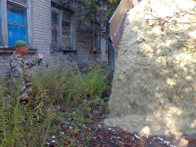 Украинские военные доставили в Зайцево и Луганское вблизи линии разграничения стройматериалы и уголь. Фоторепортаж