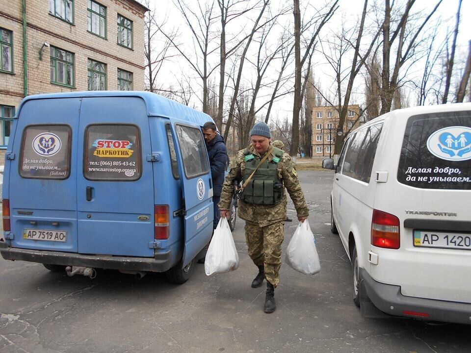 Украинские военные привезли гуманитарную помощь жителям Авдеевки, которые страдают от обстрелов боевиков. Фоторепортаж