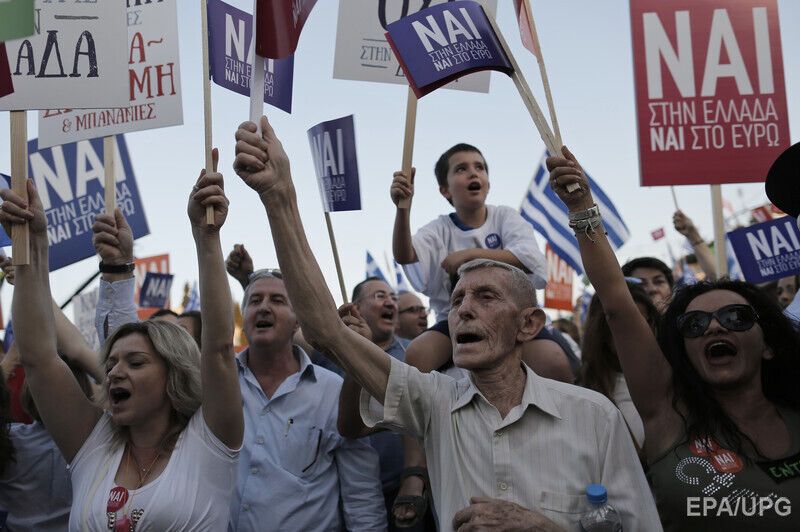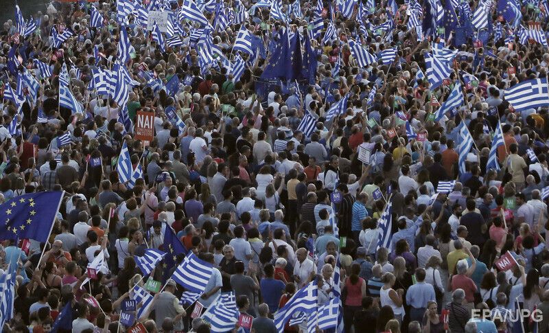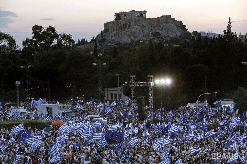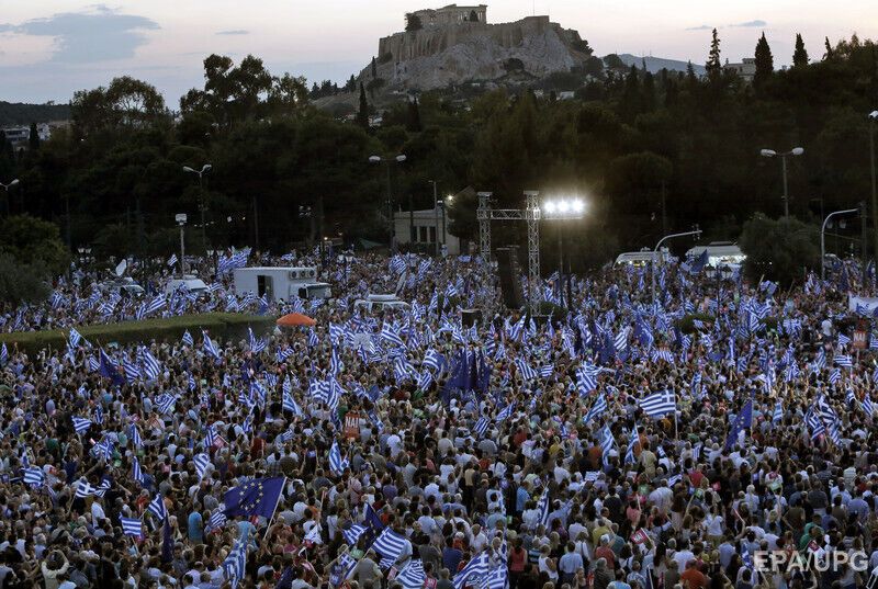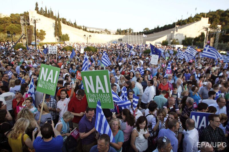 За два дня до референдума в центре Афин прошли последние агитационные митинги, которые собрали десятки тысяч людей, сообщает Euronews. По данным телеканала, на столичной площади Синтагма перед греческим парламентом в демонстрации приняли участие около 30 тыс. сторонников политики нынешнего правительства и тех, кто готов сказать "нет" условиям "тройки" кредиторов. В ходе митинга противников соглашения премьер-министр Алексис Ципрас, которого присутствующие встретили овациями, заявил, что Греция уже сегодня празднует победу демократии, достоинства и смелости. Он в последний раз призвал сограждан не бояться сказать "нет" на предстоящем референдуме и пообещал, что Греция останется в еврозоне. В то же время на стадионе Kallimarmaro собрались порядка 20 тыс. сторонников подписания соглашения с "тройкой" кредиторов. Среди участников этого митинга – члены бывшего правительства, при котором кредиторы согласились предоставить Греции кредиты. 1 июля МВФ официально подтвердил дефолт Греции. В этот же день британская газета Financial Times сообщила, что Ципрас готов принять почти все условия, выдвинутые Афинам кредиторами в минувшие выходные. С конца июня в интернете собирают деньги для спасения Греции. За три дня пользователи сети перечислили €170 тыс.