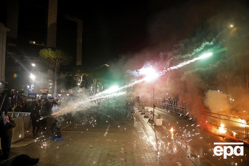 24 января в столице Албании Тиране демонстранты, требующие отставки премьер-министра Эди Рамы и его заместителя Белинды Баллуки, забросали здание правительства фейерверками и коктейлями Молотова, после чего полиция применила к протестующим силу. Об этом сообщает AlbanianNews.com.