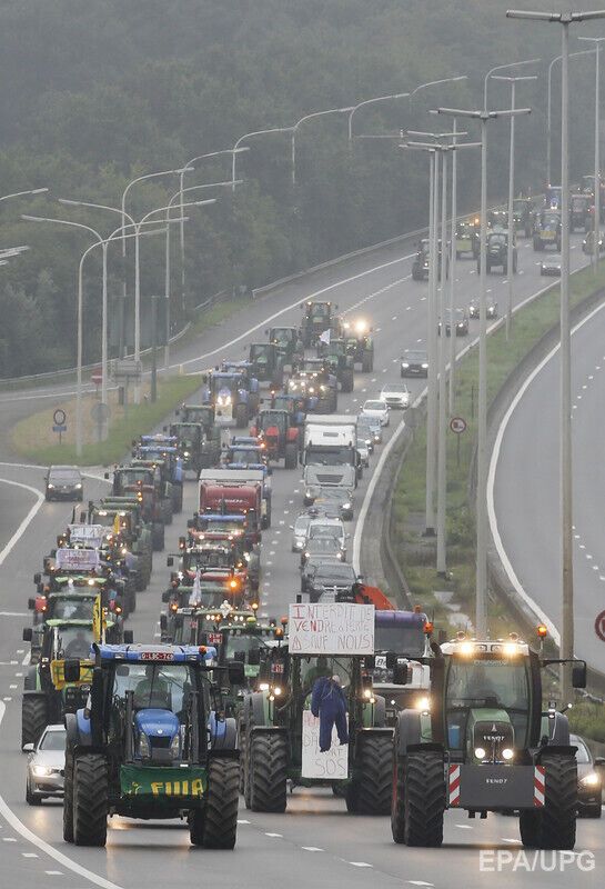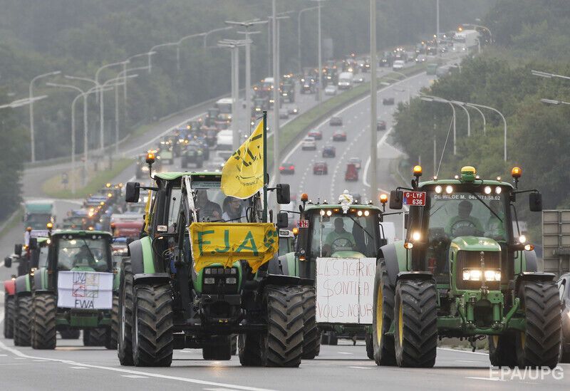 На прошлой неделе аналогичную акцию протеста провели французские фермеры, пригнав в Париж 1700 тракторов.