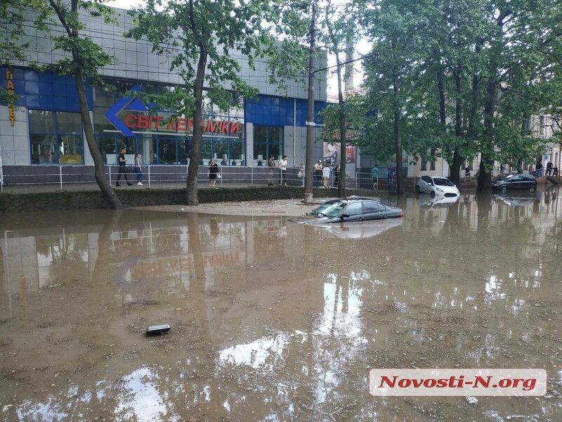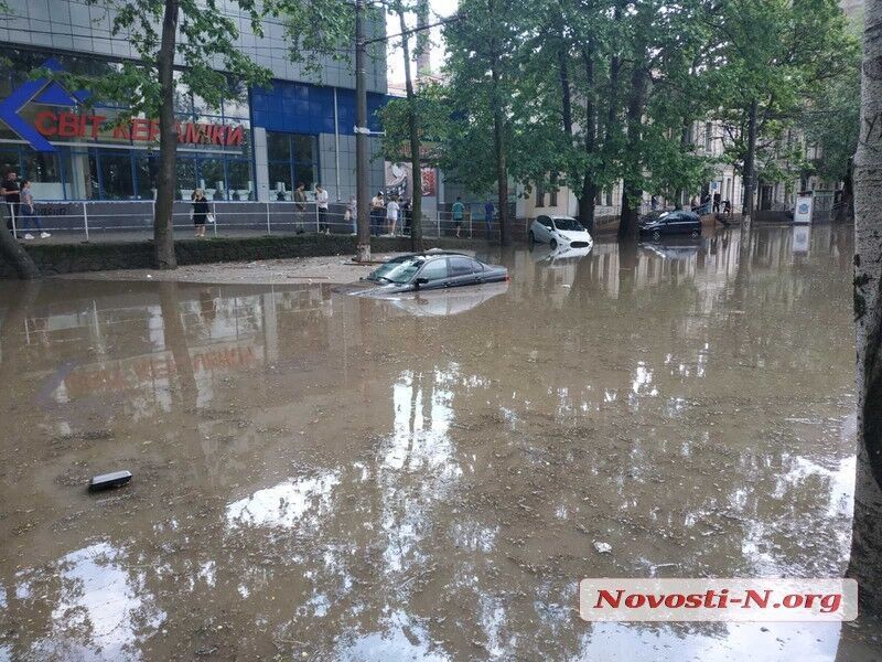 В центре Николаева после ливня утонули десятки автомобилей. Фоторепортаж