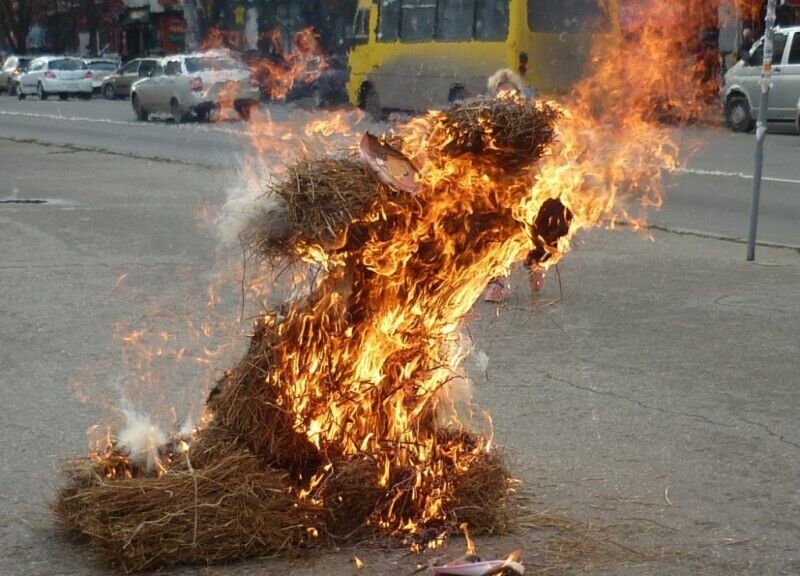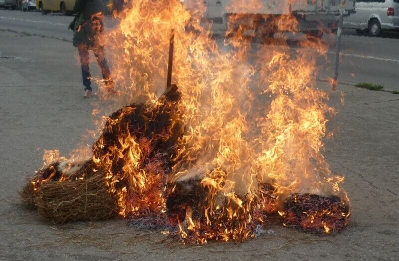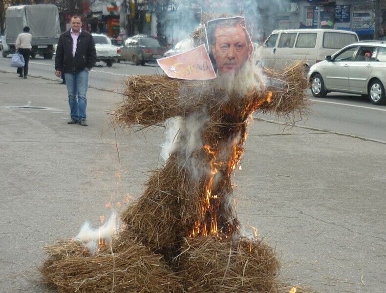 В центре Симферополя сожгли чучело с изображением Эрдогана. Фоторепортаж