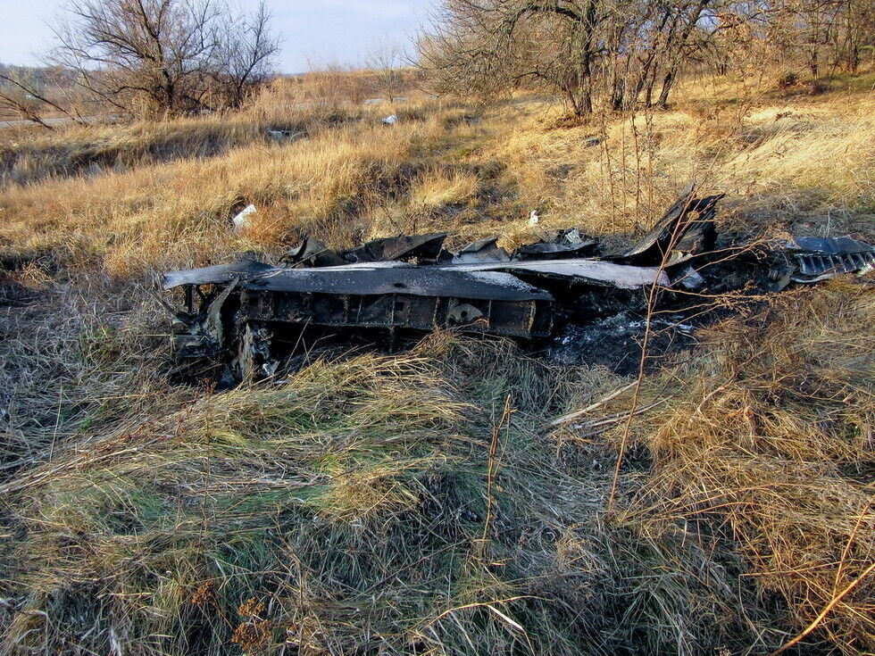 Запорожской сайт "Вся Власть" опубликовал фото с места падения штурмовика Су-25. Кадры были сделаны в первый час после авиакатастрофы, в которой погиб 23-летний пилот Егор Большаков. По словам очевидца трагедии, местного фермера Павла Калашника, самолет зацепил высоковольтные провода, пролетел над дорогой, задрав нос, около семисот метров, чудом не зацепив идущие по шоссе автомобили, и рухнул на обочине трассы Харьков – Симферополь возле лесопосадки. Обломки самолета были разбросаны в радиусе километра.