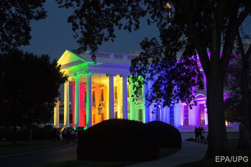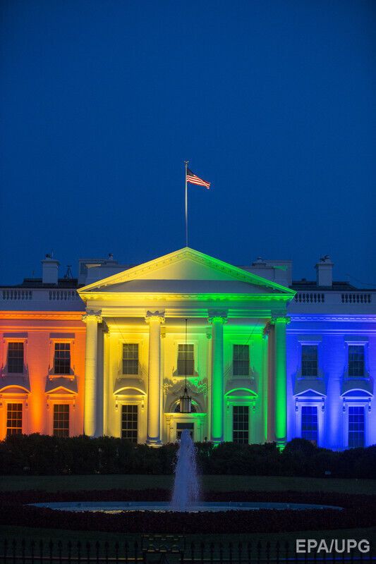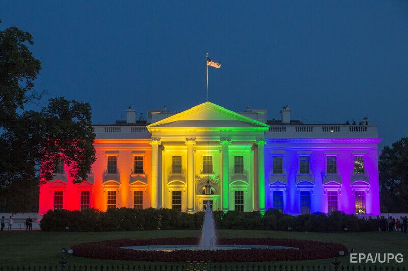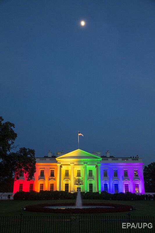 В честь решения Верховного суда США, который постановил, что однополые браки не противоречат Конституции страны и разрешил заключать их по всей территории, в Вашингтоне организовали радужную подсветку Белого дома. Ранее однополые браки были легализированы лишь в отдельных штатах. Президент США Барак Обама в своем обращении приветствовал это решение.
