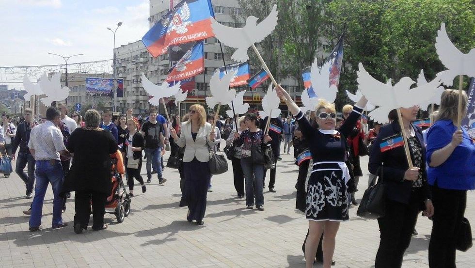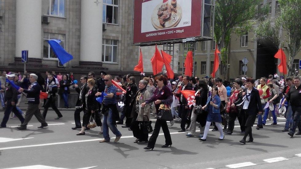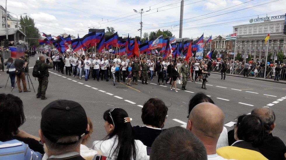 Сегодня террористическая организация "Донецкая народная республика" отмечает вторую годовщину со дня проведения псевдореферендума о своей независимости. На улице Артема – центральной улице Донецка – состоялось шествие. По заявлениям представителей незаконной "ДНР", в праздновании должны были принять участие 40 тысяч человек.