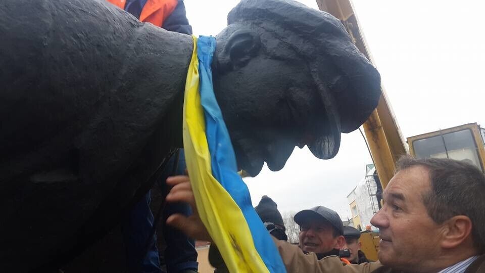 Сняли его с постамента с помощью грузового автокрана. В настоящее время памятник передан на хранение одному из коммунальных предприятий города, а дальнейшую его судьбу должны определить депутаты Глуховского горсовета.