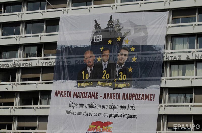 Активисты коммунистического профсоюза "Всегреческий боевой фронт" (ПАМЕ) в четверг захватили здание министерства финансов Греции в знак протеста против планов экономии правительства и действий международных кредиторов страны. Как сообщае Deutsche Welle, около 200 человек вторглись в здание Минфина в центре Афин. Активисты поднялись на крышу и вывесили огромный баннер с надписью "Хватит лить кровь, хватит платить".