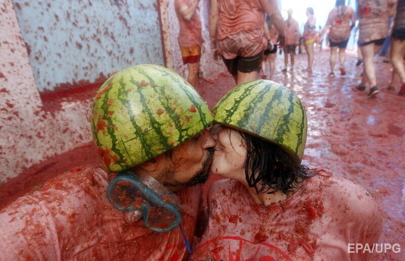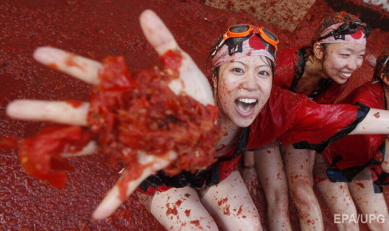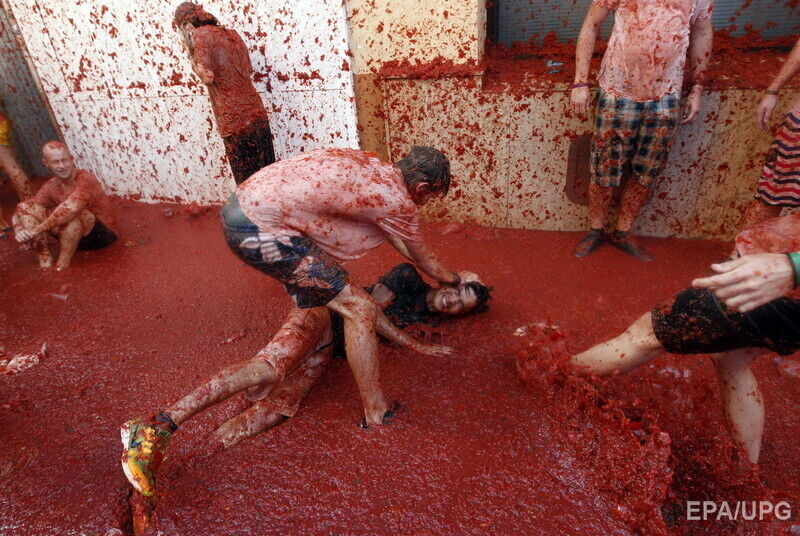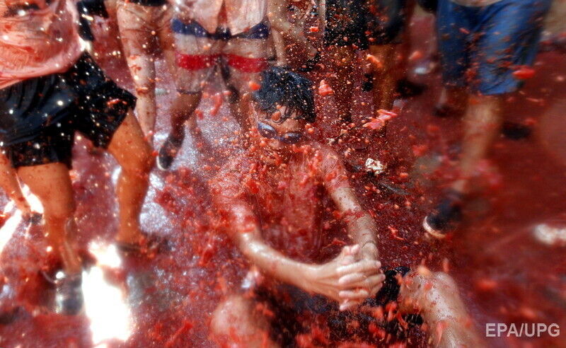Сегодня в испанском городе Буньоль прошел 70-й фестиваль "Ла Томатина", который проводится в Испании с 1945 года. Битва помидорами проходит ежегодно в конце августа и продолжается около часа. За это время участники фестиваля успевают бросить друг в друга около 100 тонн помидоров. По правилам перед началом фестиваля, чтобы предотвратить травмы, помидоры должны быть раздавлены. Google отметил праздничным дудлом юбилей фестиваля.