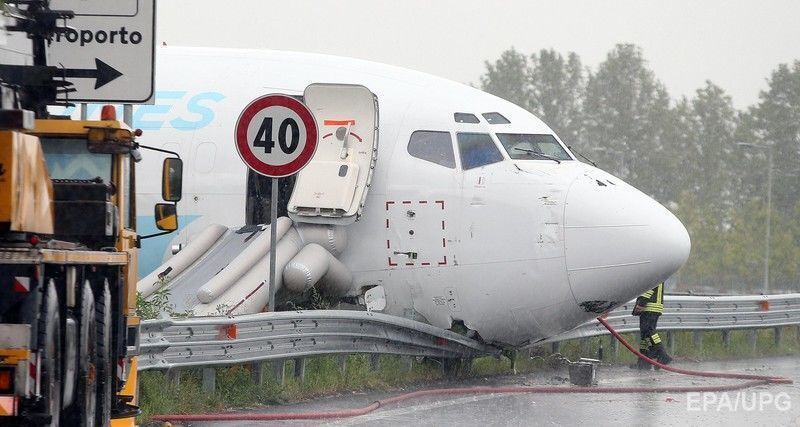 В Италии самолет при посадке вылетел на автотрассу. Фоторепортаж