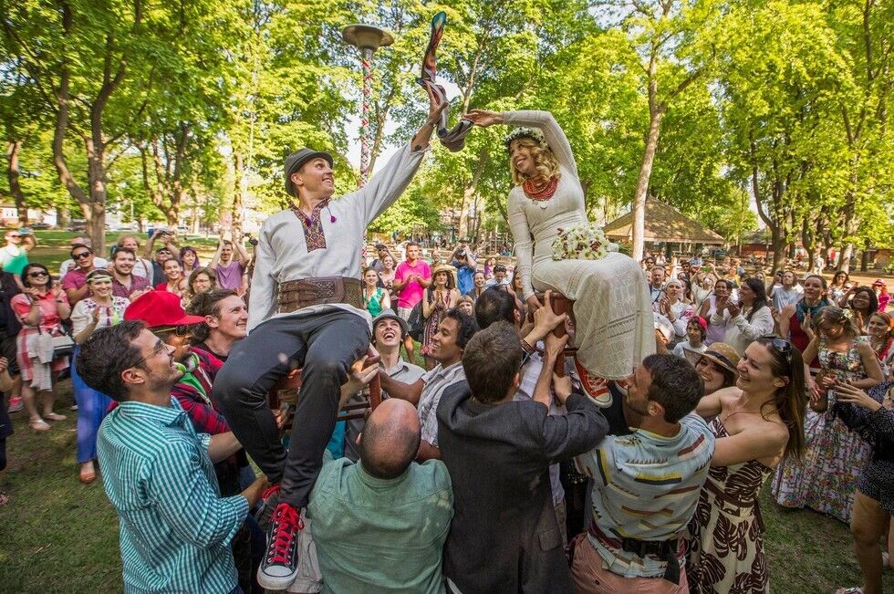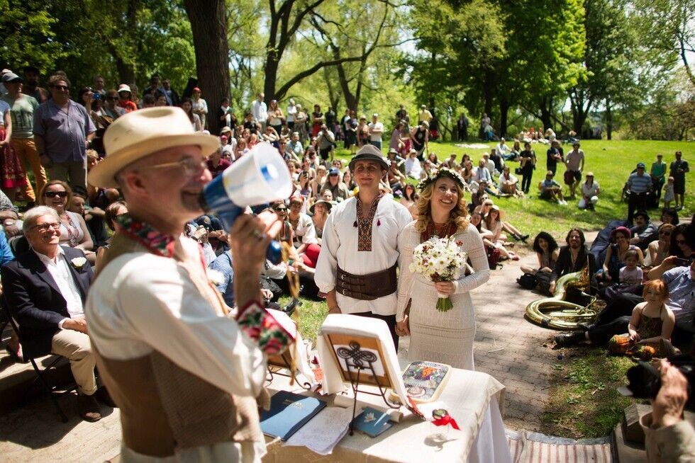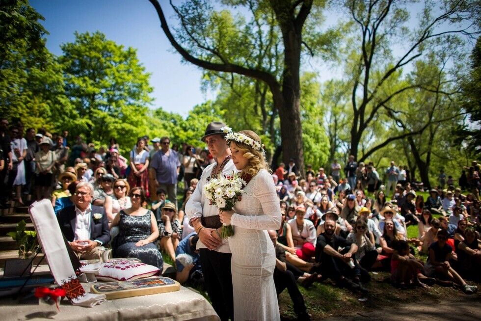 В Торонто сыграли украинскую свадьбу, сообщает издание The Globe And Mail. Молодожены познакомились в Киеве на Майдане в январе 2014 года. Маричка Кудрявцева родом из Украины, Марк Марчик – из Канады. Они сделали свадьбу публичной и пригласили на нее друзей из социальных сетей. Сейчас Маричка занимается волонтерской деятельностью, собирая при помощи украинской диаспоры помощь для госпиталей в Украине.
