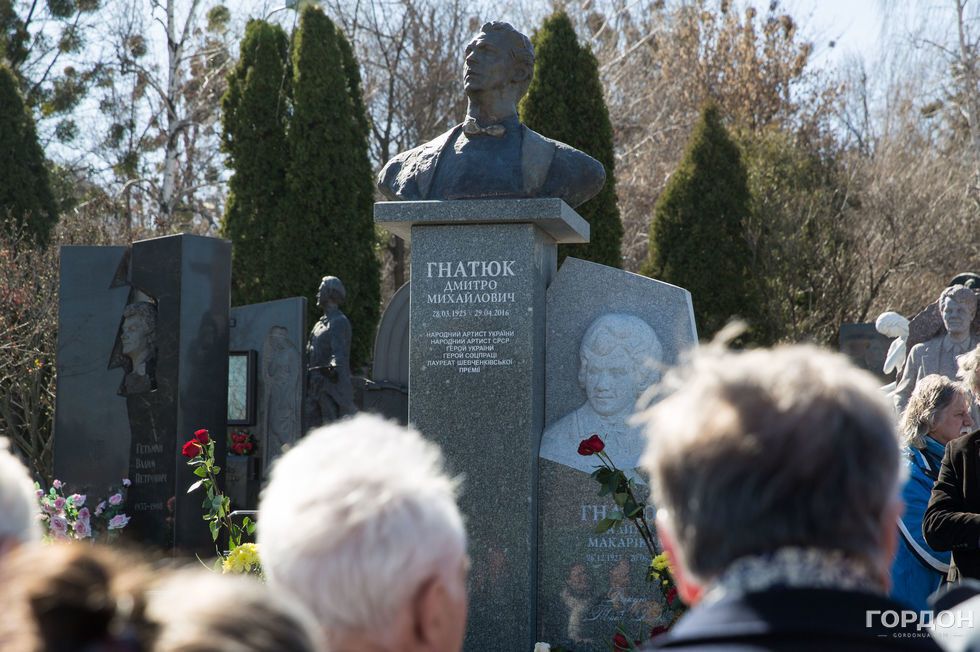 28 марта на Байковом кладбище в Киеве состоялось открытие памятника выдающемуся украинскому оперному певцу Дмитрию Гнатюку. Церемония была приурочена к 92-й годовщине со дня рождения артиста. Почтить его память пришли литераторы, музыканты, политики, журналисты и общественные деятели, сообщил корреспондент издания "ГОРДОН".