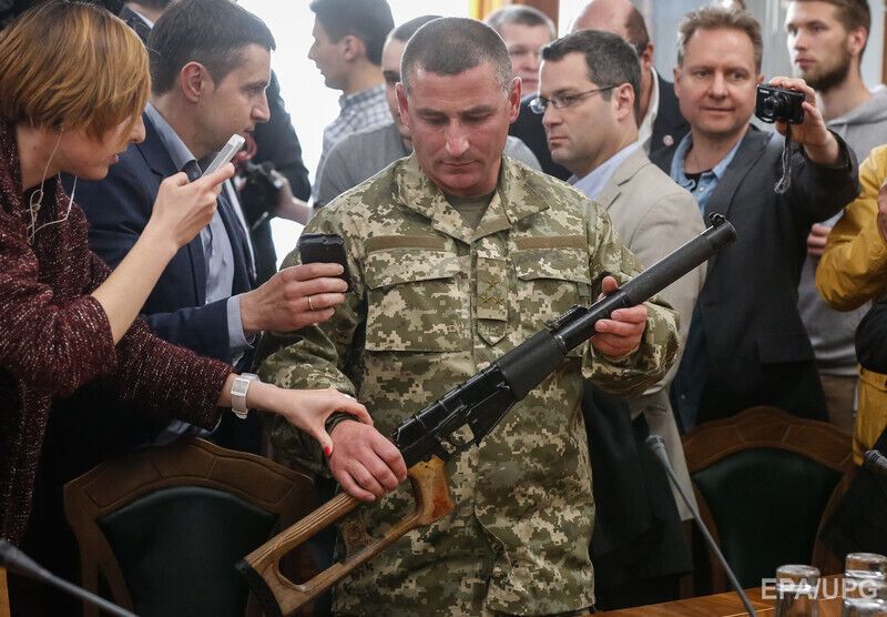В Киеве показали винтовку "Винторез", захваченную у российских военных под Счастьем. Фоторепортаж