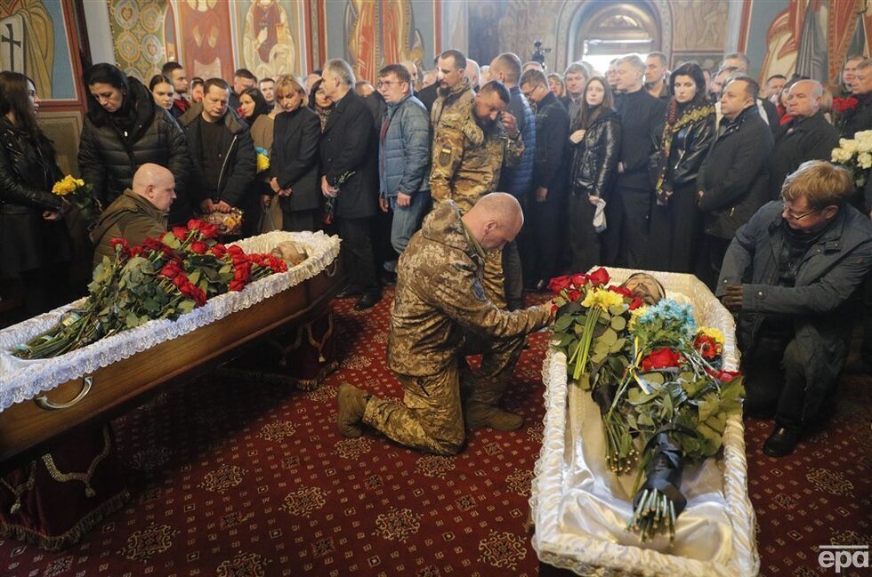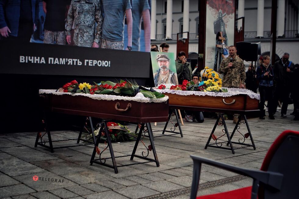 В Киеве попрощались с бывшим нардепом Олегом Барной, который погиб на фронте, и его командиром Валерием Дороховым. Фоторепортаж